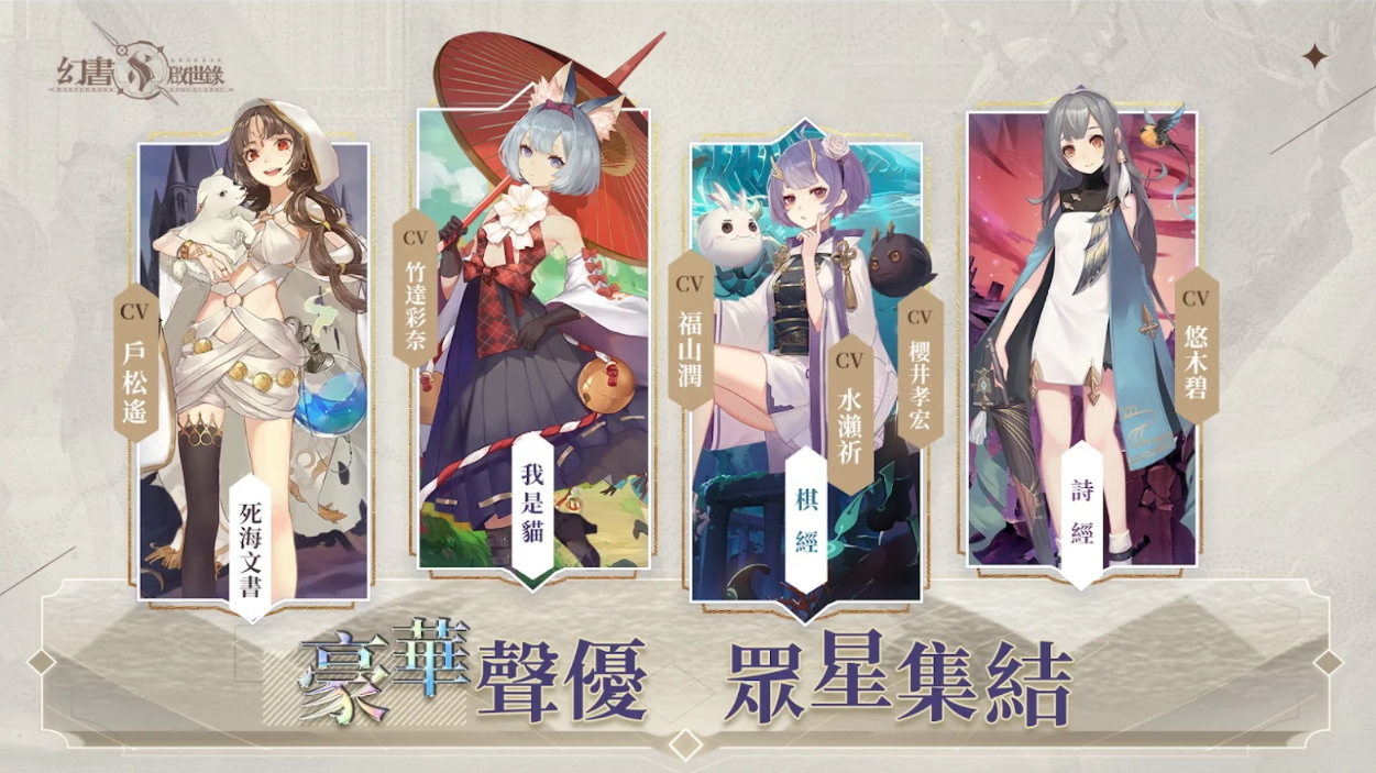 開服後也將開放特殊卡池,其中「啟程祝願」的首次十連抽將能必中一張指定的 SSR 幻書,此外人氣角色「聊齋誌異」、「尼伯龍根的指環」、「死海文書」以及「詩經」將會分別於「鬼怪與詛咒」、「采詩官與先知」卡池中機率特別提升。