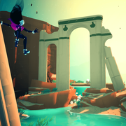 之間並攀爬陡峭空間。她優雅地滑行於遍佈世界的橫軌上,到達更高點和秘密飛地。冒險過程中,玩家將會遇到更大型的異形生物,暗示著這宇宙無底洞越來越可怕的潛伏危害性質;越深入探索,這些交鋒對峙在挑戰性和規模上也會隨之升級,你需要更懂得掌握時機並具備優越的平台跳躍技能來完成任務。