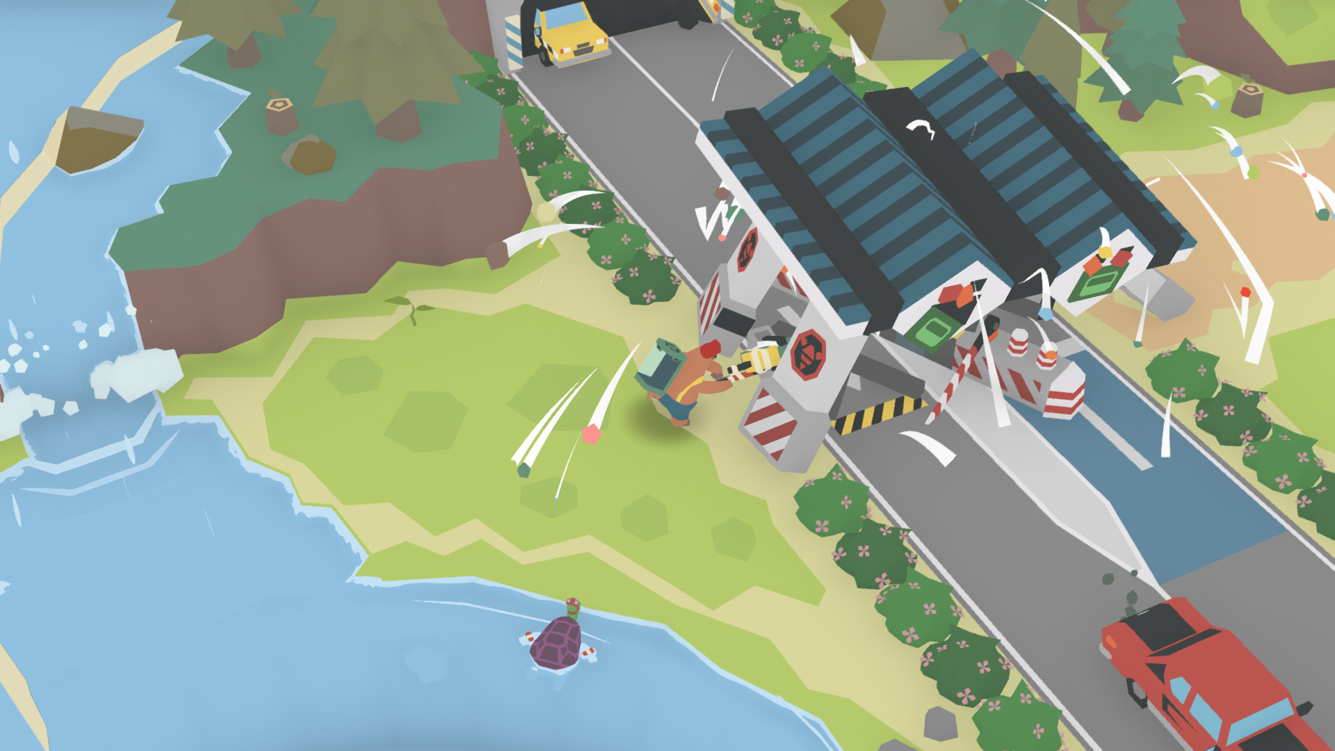 的幫助下,讓大自然恢復昔日的光景。玩家要利用手中的斧頭在森林、建築工地等各種場景中「砍」出你的道路。此外,玩家可透過減少使用、再使用用與回收使用的方式來提升你的切碎能力,同時要修補周遭的環境來解決難題、拯救一群