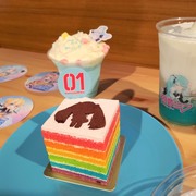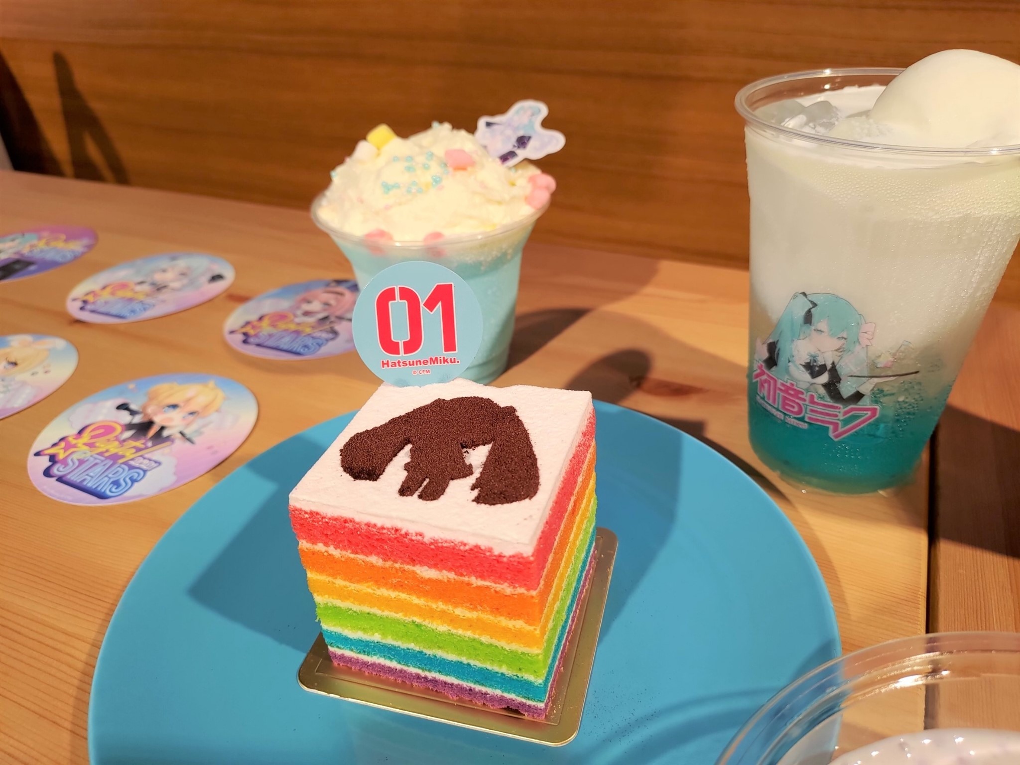 這次以 Piapro 角色形象來發想主題餐飲,本次菜色有使用了代表初音未來的青蔥來點綴日式烤雞炊飯,鏡音連和鏡音鈴的南瓜湯馥麵包餐、巡音流歌的粉紅醬筆管麵、MEIKO 的番茄肉醬義大利麵、KAITO 的藍莓果物優格燕麥,以及一系列的輕食甜點、餅乾,與各種角色專屬的飲品。餐點與飲品都將附上本次活動限定的專屬角色插卡與吸管套,而只要購買任一糖霜餅乾和系列飲品,即可隨機獲得特典杯墊乙張。(共八款隨機發送恕不挑款)