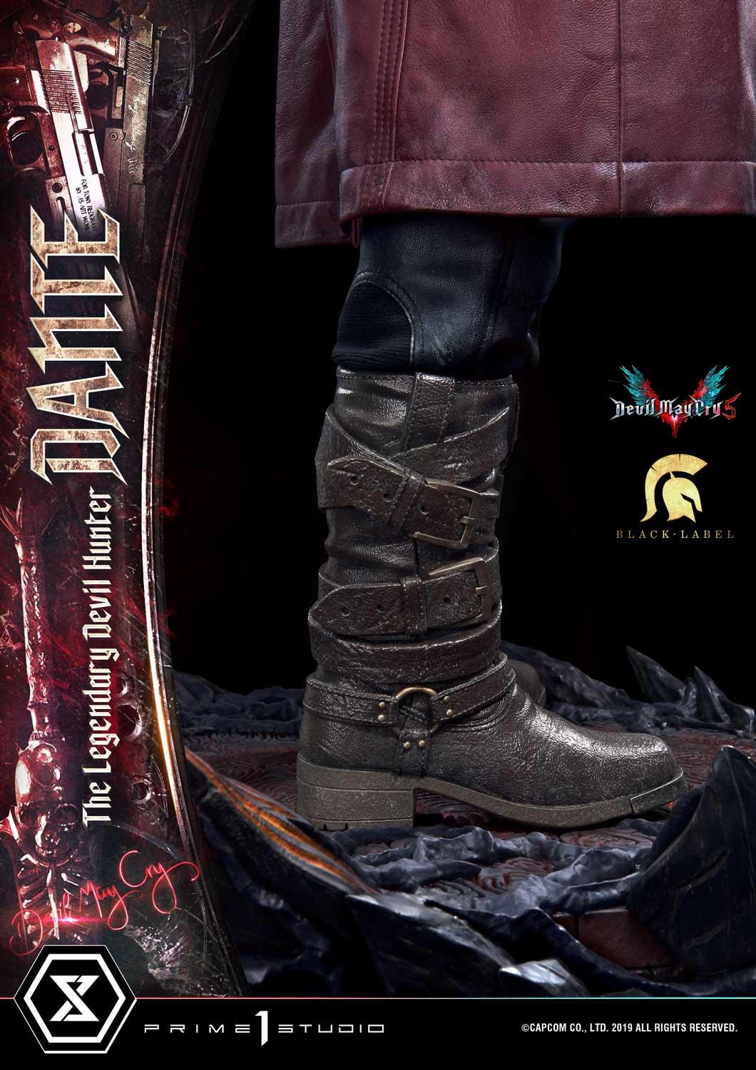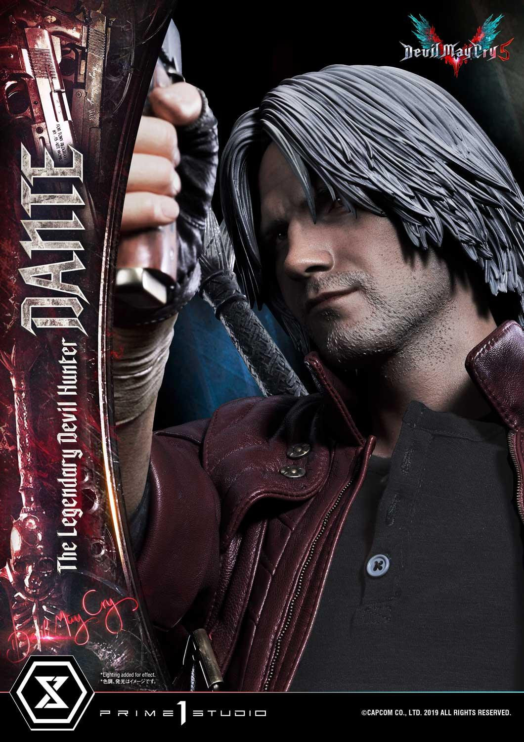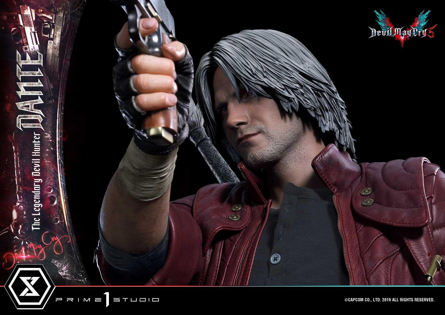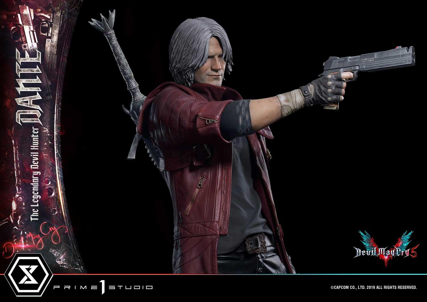惡魔獵人 5》遊戲中登場的老練惡魔獵人「但丁」造型為基礎所製作,以追求極致品質為訴求,採用超過 1 公尺高的 1/2 超大比例,採用合成皮材質製作的服裝,細緻刻劃出但丁身著紅色皮衣、黑色皮褲與棕色皮靴,手持黑檀木與白象牙雙槍、背負反叛大劍的成熟魅力。