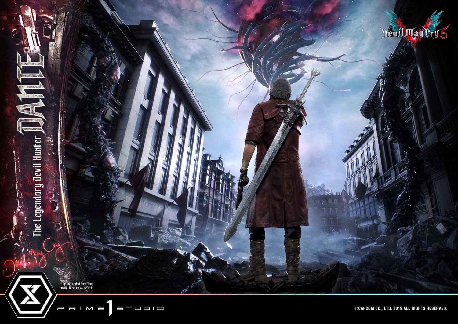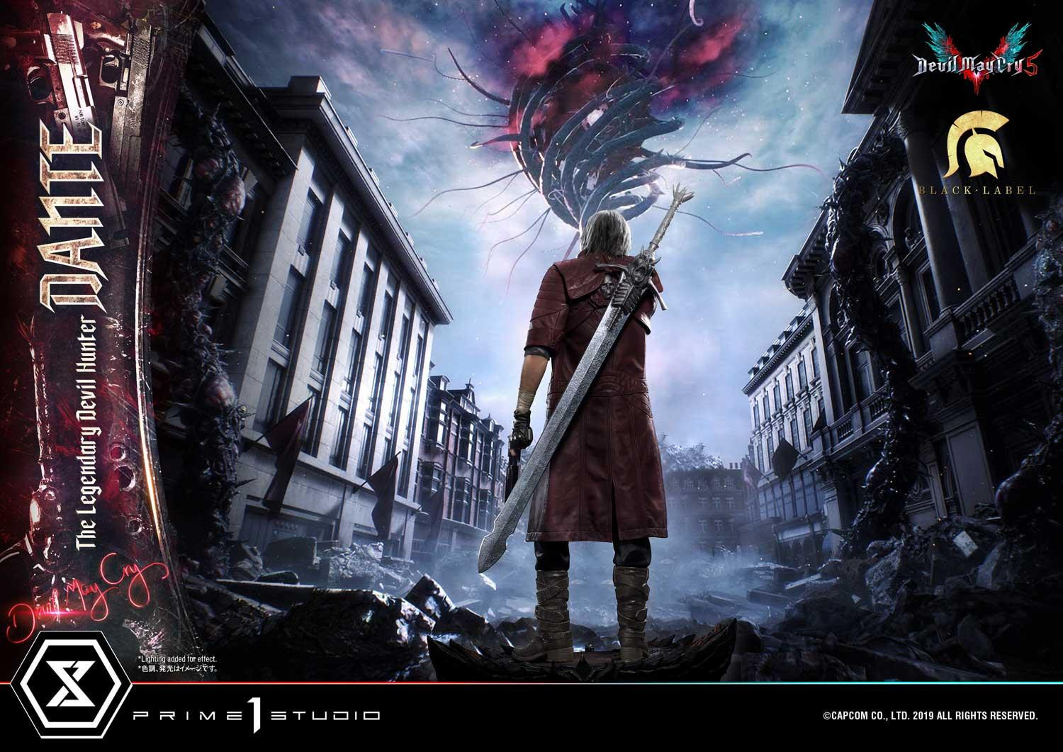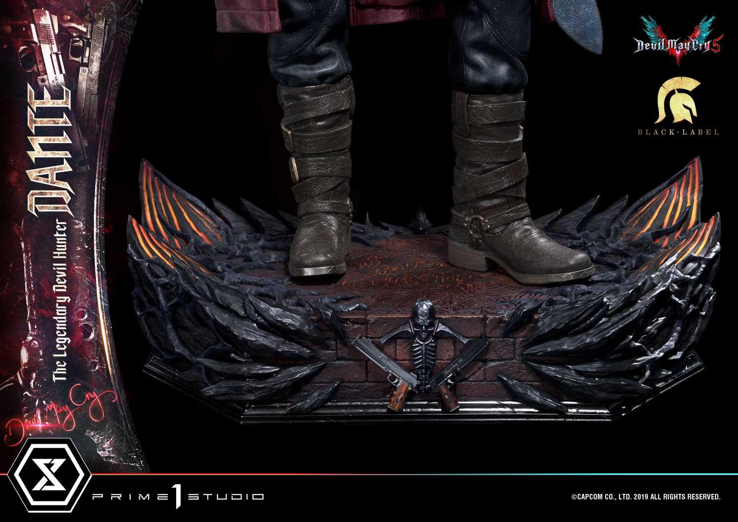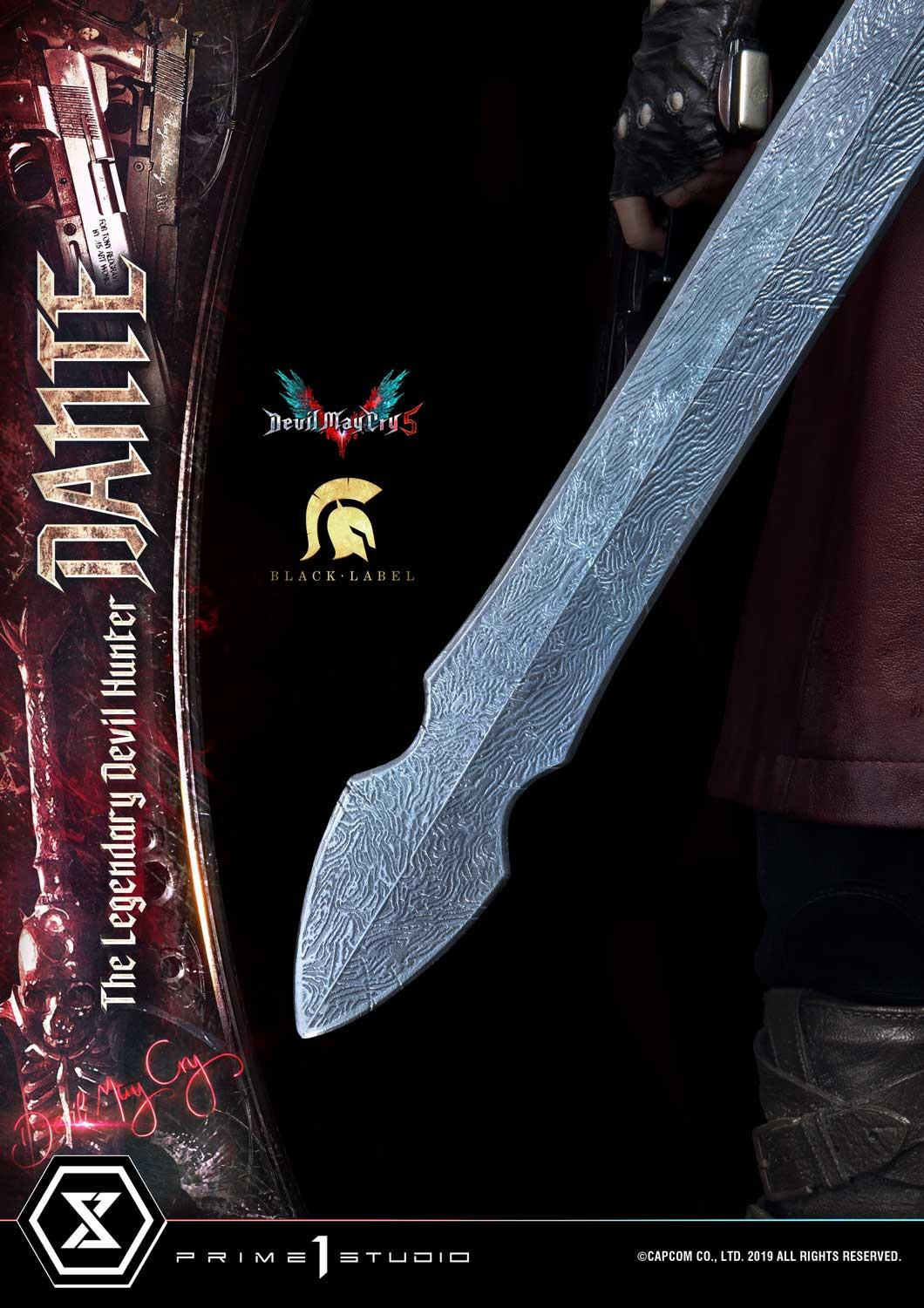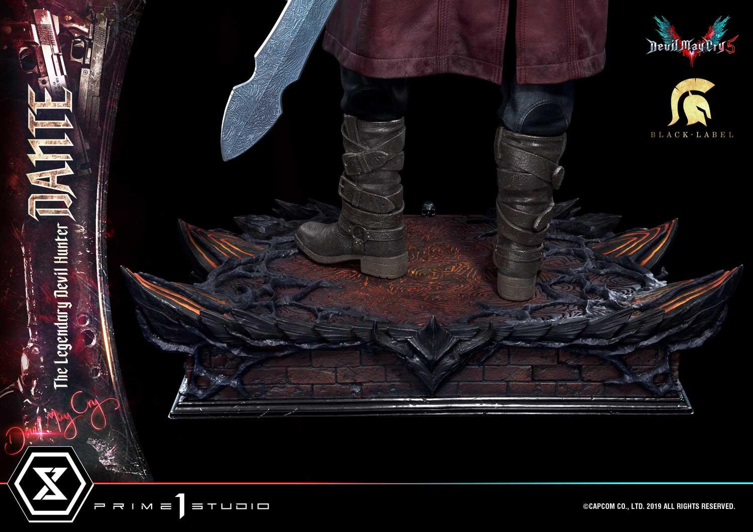 惡魔獵人 5》遊戲中登場的老練惡魔獵人「但丁」造型為基礎所製作,以追求極致品質為訴求,採用超過 1 公尺高的 1/2 超大比例,採用合成皮材質製作的服裝,細緻刻劃出但丁身著紅色皮衣、黑色皮褲與棕色皮靴,手持黑檀木與白象牙雙槍、背負反叛大劍的成熟魅力。