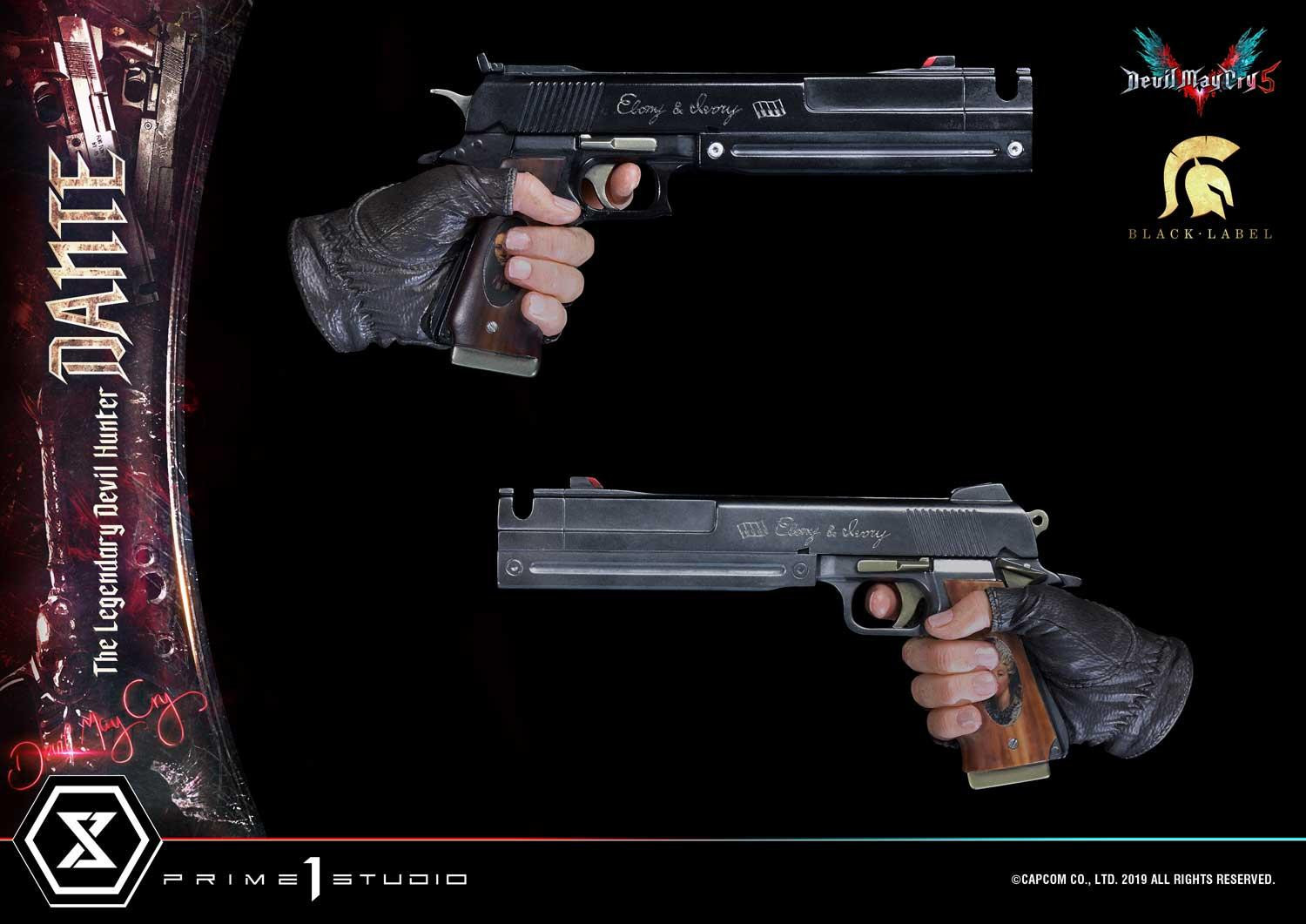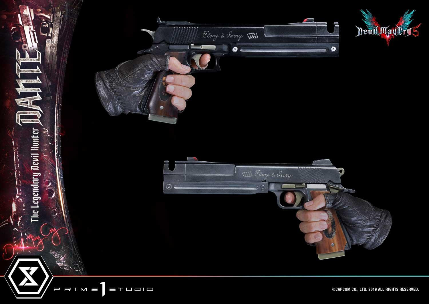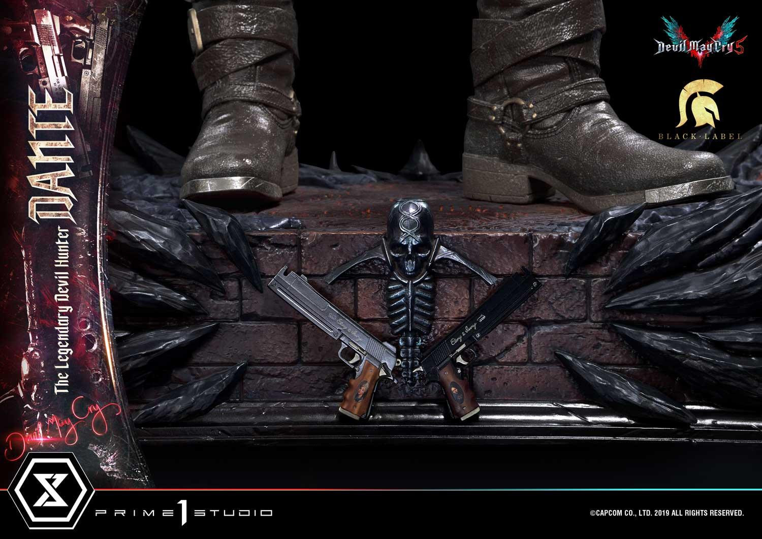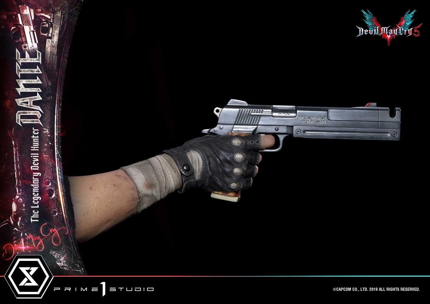 惡魔獵人 5》遊戲中登場的老練惡魔獵人「但丁」造型為基礎所製作,以追求極致品質為訴求,採用超過 1 公尺高的 1/2 超大比例,採用合成皮材質製作的服裝,細緻刻劃出但丁身著紅色皮衣、黑色皮褲與棕色皮靴,手持黑檀木與白象牙雙槍、背負反叛大劍的成熟魅力。