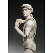 「桌上美術館」系列,第四彈為米開朗基羅的最高傑作,同時也是代表文藝復興時期的雕刻作品「大衛像」,展現出人體之美與力量,充滿魄力的造型至今仍擄獲人心。本次使用能容易擺出姿勢且不易滑動的 figma 獨創關節零件,不只可以重現「大衛像」的原本姿態,更能擺出各式各樣的動作。重點部分使用軟材質,確保平衡與可動性,注重均衡比例的小型頭部上含可動式眼球。附用來重現「大衛像」原本姿態的專用台座、手掌零件、可實際擺出投石動作的「投石器」,以及其他手掌零件。商品包含能支援各種場景的附可動支架 figma 專用台座。