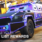 在 5 場不同「街頭競速」奪冠的洛聖都車聚會員,將可獲得本週的獎品載具:全新的絕品密語。這輛車就停放在威皮斯拉姆貨車上,參加車聚時記得抽空去看看它的英姿,然後找競速主辦方報名參加「街頭競速系列賽」。您可以到互動選單的「獎品載具挑戰」區追蹤您的資料。