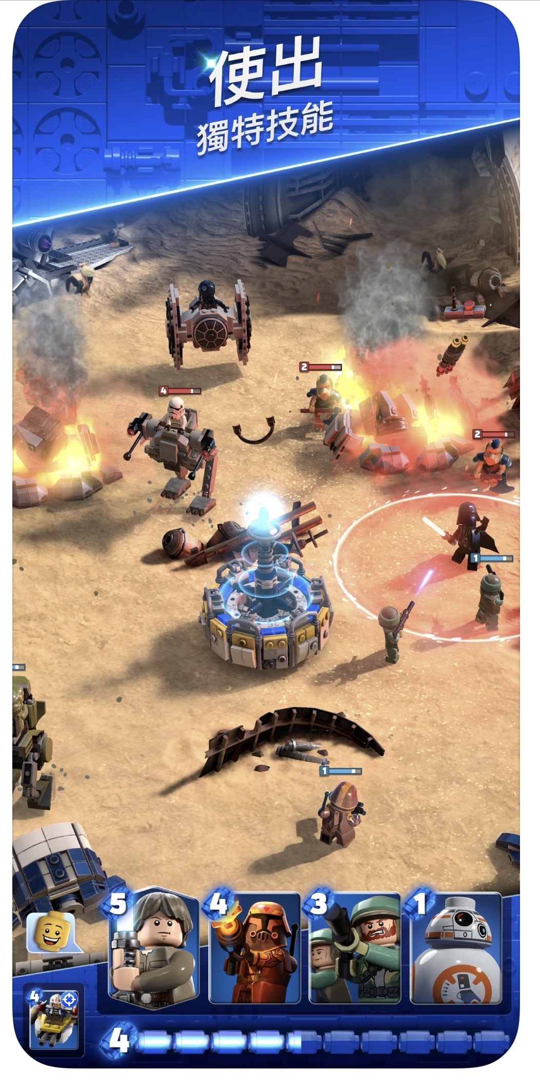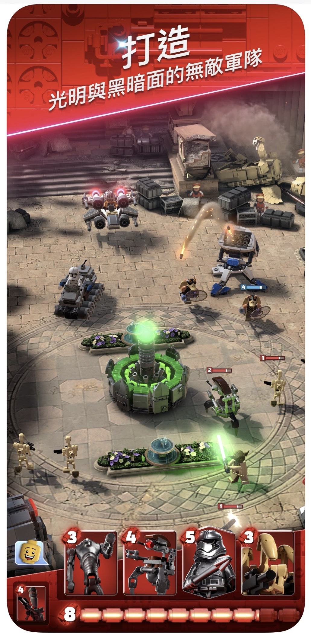 星際大戰》各時期元素,玩家們將化身星戰中的主要角色,能任選光明與黑暗兩方勢力,試著找出各角色的專屬絕招搭配,組成自己的軍隊,並同時用樂高積木堆疊堅固的堡壘,向敵方攻城掠地!