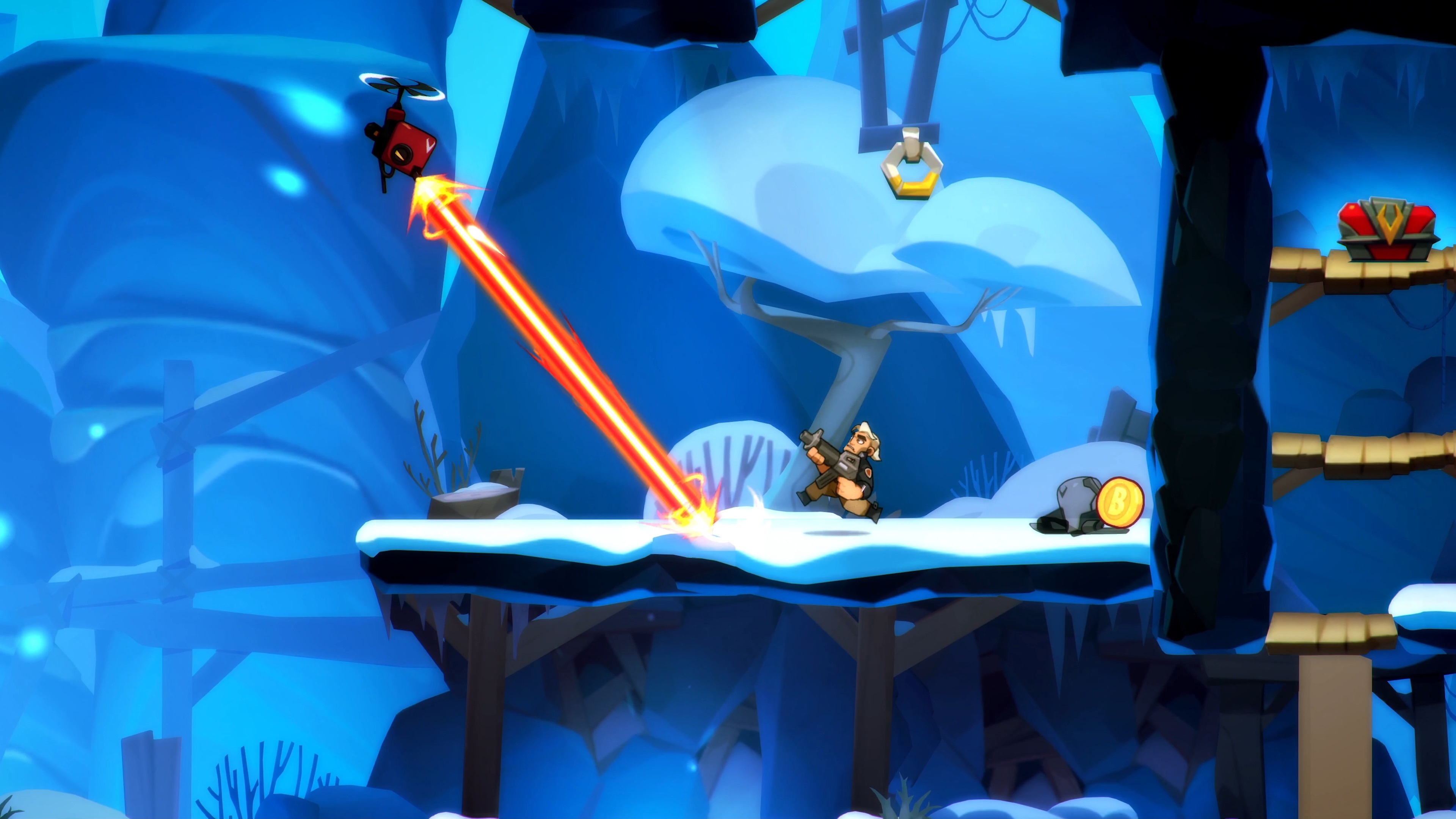 砲轟小隊》是 Allods Team Arcade 旗下首款自製遊戲,將平台跑跳玩法與類銀河戰士惡魔城的設計融於一體。 遊戲的故事靈感來源於上世紀 80 年代流行的爆米花動作電影,玩家需要集結一支超級間諜小隊,前往受到污染的世界中破解瘋狂科學家的陰謀。