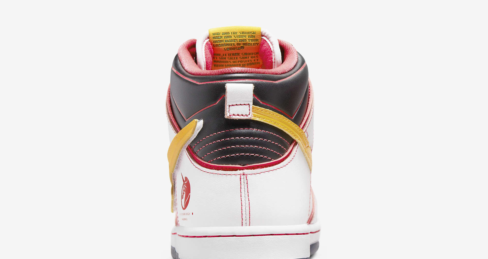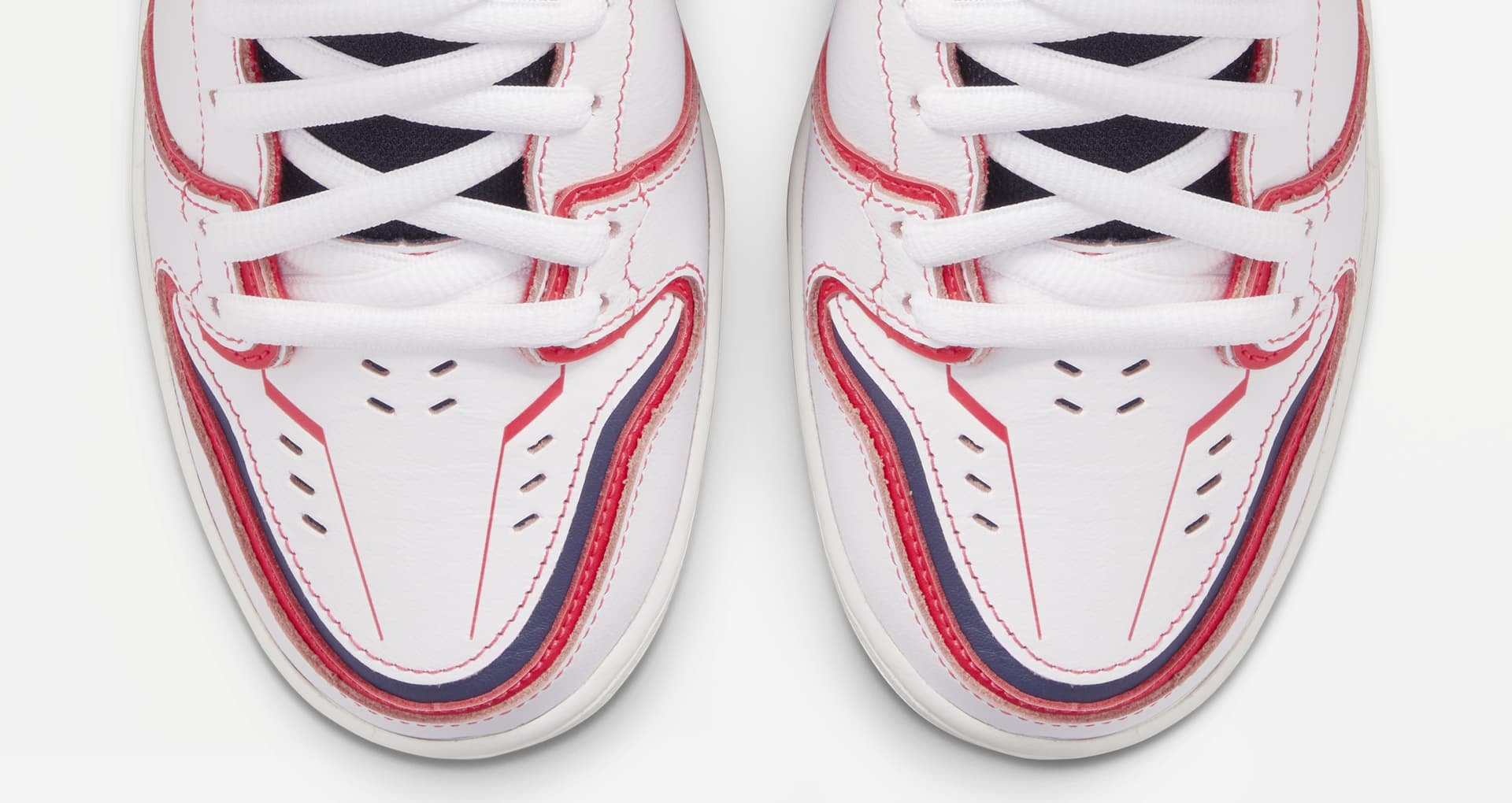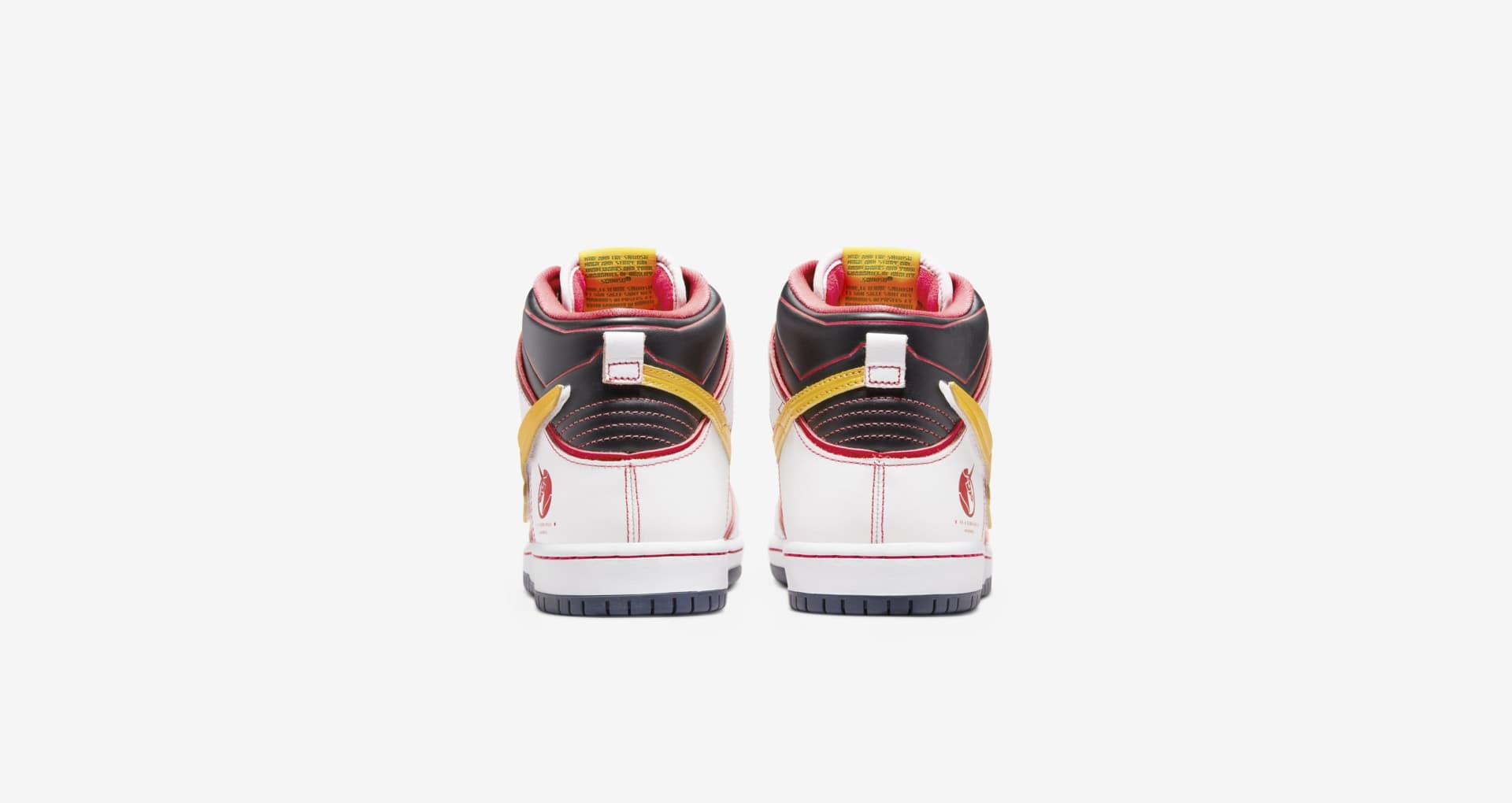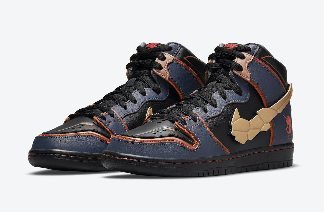 RX-0 Unicorn Gundam 02 Banshee 為基礎,搭配經典鞋款「SB Dunk High」推出兩款造型鞋款。兩雙鞋款除了使用機體配色外,鞋款也可見到多處設計細節,而 NIKE 的標誌也藉由合作玩轉成天線的概念。