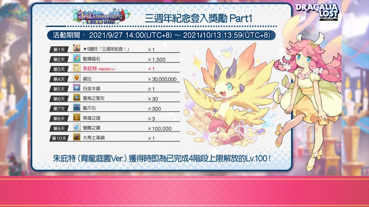 《失落的龍絆》釋出三週年版本更新情報及活動 揭露「潔西雅(龍絆日 Ver.)」