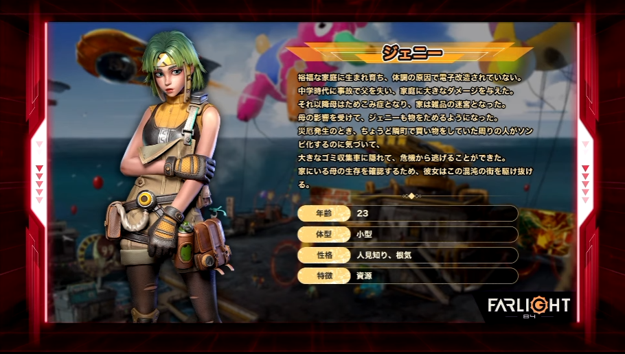 末日餘暉》的遊戲背景設定於 2084 年,玩家將探索混沌的末日廢土世界。善用隨身推進器「電力背包」能在複雜地形快速移動,使用步槍、狙擊槍等多樣化武器一較高下,還可駕駛「廢土自製」、「9A 工業」、「日冕汽車」三大勢力生產的七種載具橫行戰場。