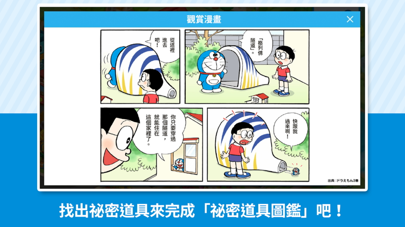 此外,裝飾中還包含了哆啦 A 夢的祕密道具,當玩家找出隱藏在裝飾裡的祕密道具後,就可以觀賞「漫畫」中這個秘密道具的登場片段,多元內容讓各年齡層玩家都能享受遊戲樂趣。