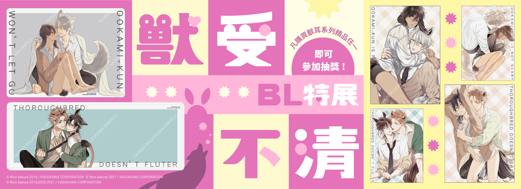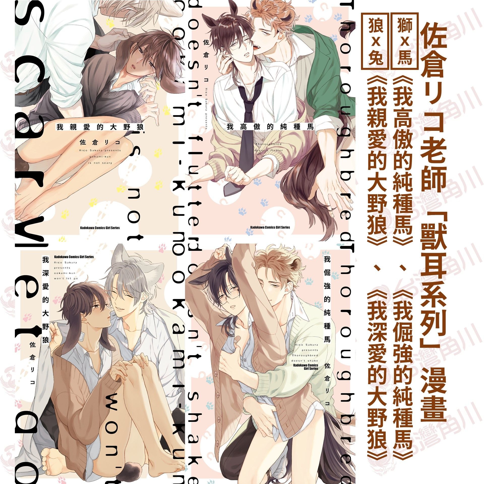 佐倉リコ「獸耳系列」最新續作《我深愛的大野狼》講述在從動物完成獨自進化的獸人所生活的世界中,身為兔子的「宇佐美黑兔」和野狼「吠崎志狼」終於超越草食與肉食的障礙,成為了一對戀人。宇佐美受到溫柔又有點過度保護的志狼疼愛,過著甜蜜的生活,卻被志狼的母親發現兩人正在交往……。《我倔強的純種馬》則講述兩人已從青梅竹馬發展成戀人後,身為名家長子的純種馬「司馬駿匡」被安排和同為純種馬的朋友結婚,雖然司馬拜託朋友取消婚約,這件事卻被「獅子堂王我」知道了?《我深愛的大野狼》、《我倔強的純種馬》將同步於 10/12 起全台上市。