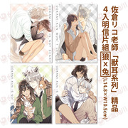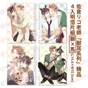 雖是肉食系但意外專情的大野狼「吠崎志狼」遇上草食系生性膽小的沉默寡言小兔兔「宇佐美黑兔」組成「狼×兔」,以及花花公子玩世不恭的霸道獅王「獅子堂王我」與出身名家優等生純種馬「司馬駿匡」組成「獅×馬」,以兩組 CP 主角為主題設計,推出六款全新周邊精品──兩款「4 入明信片組」、兩款「大尺寸桌墊」以及兩款「滑鼠墊」。(購買通路:安利美特/線上商店、博客來網路書店、金石堂網路書店及台灣角川官網)
