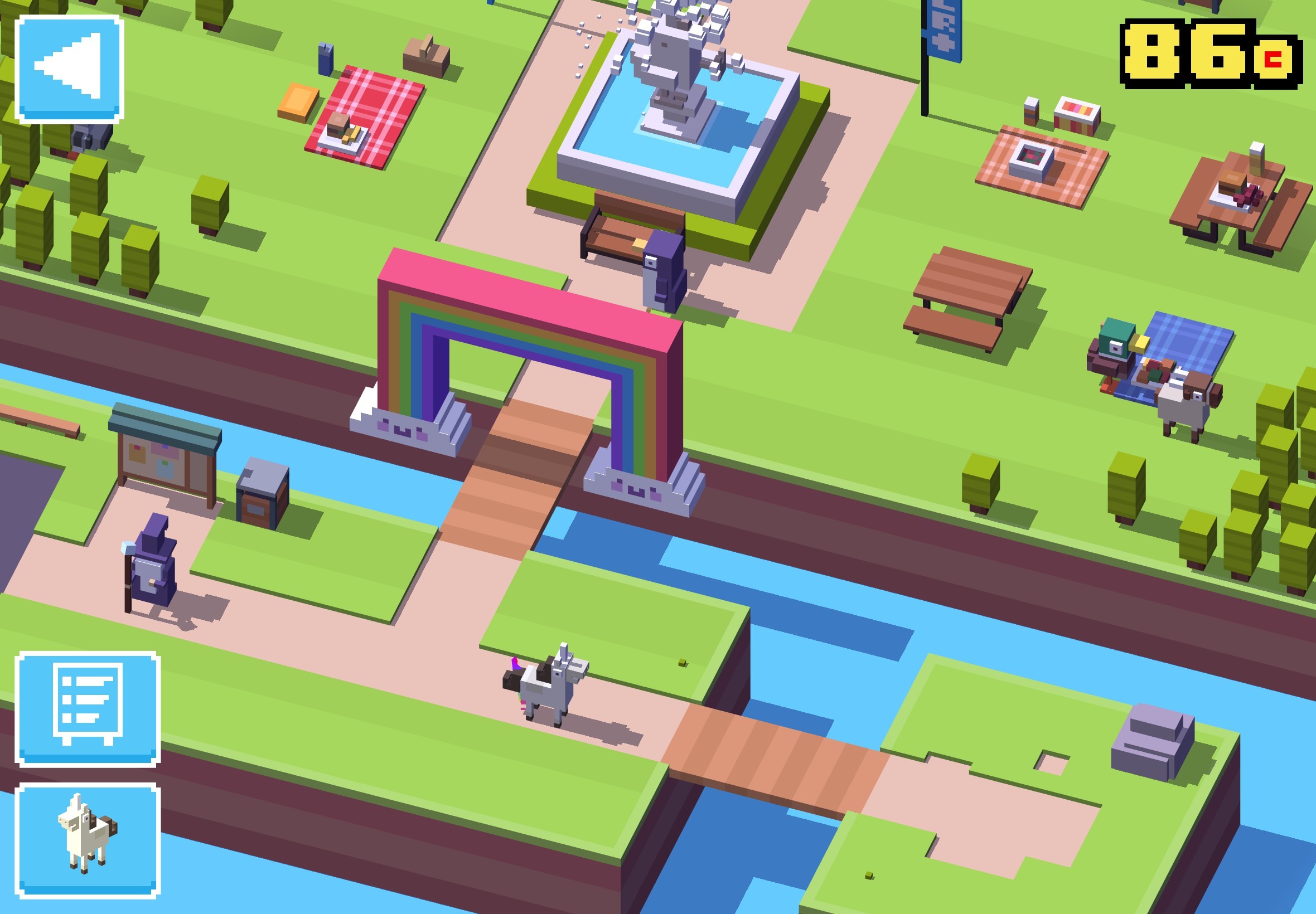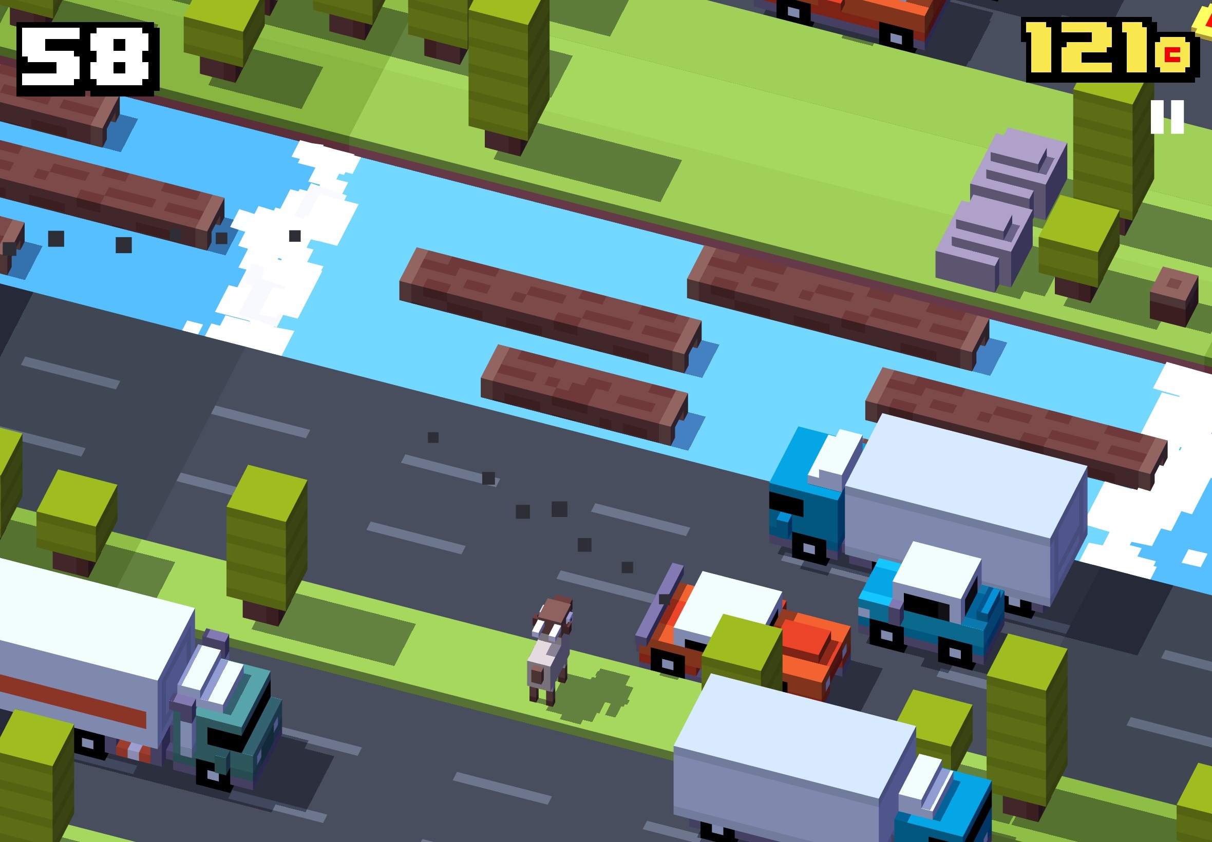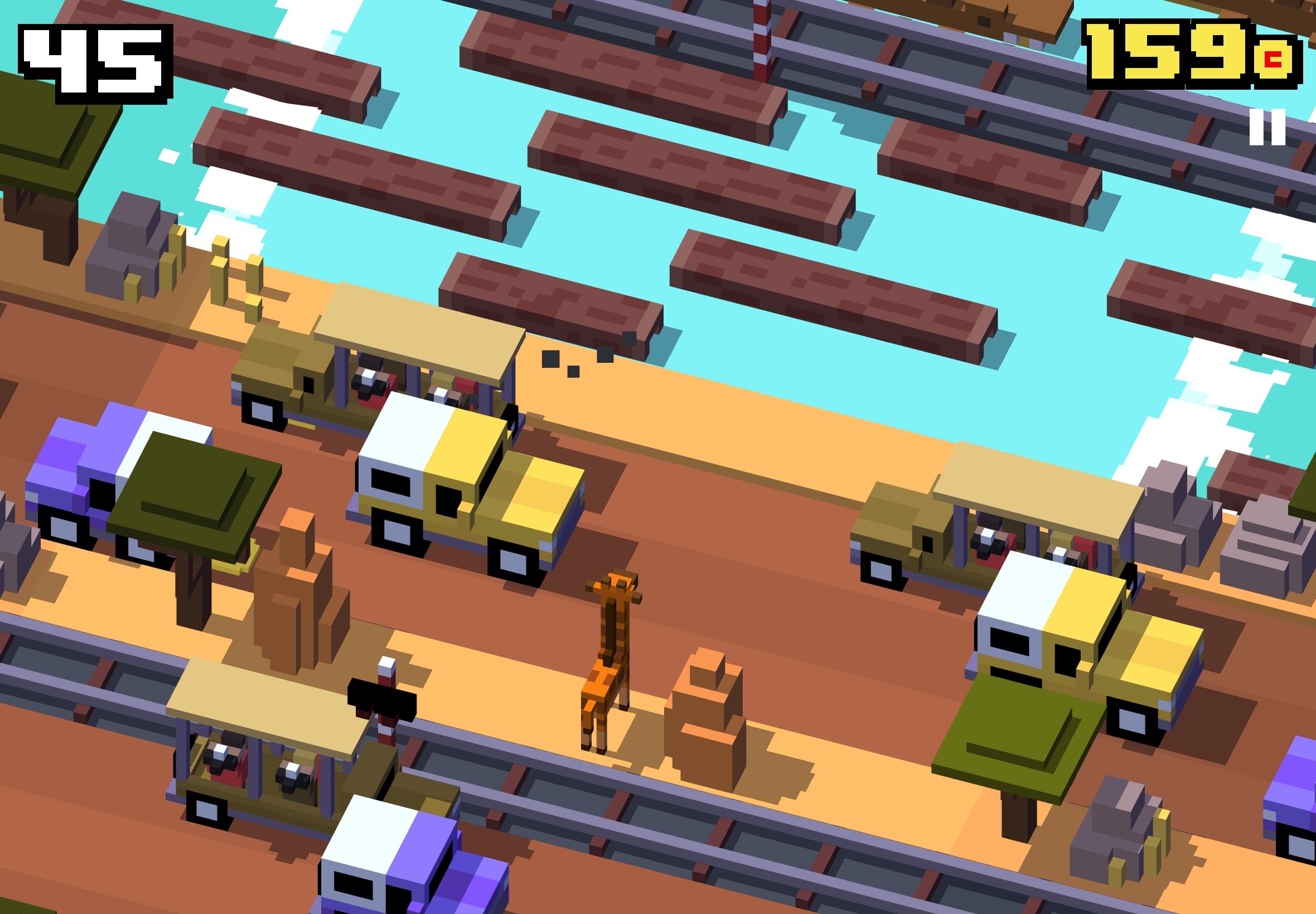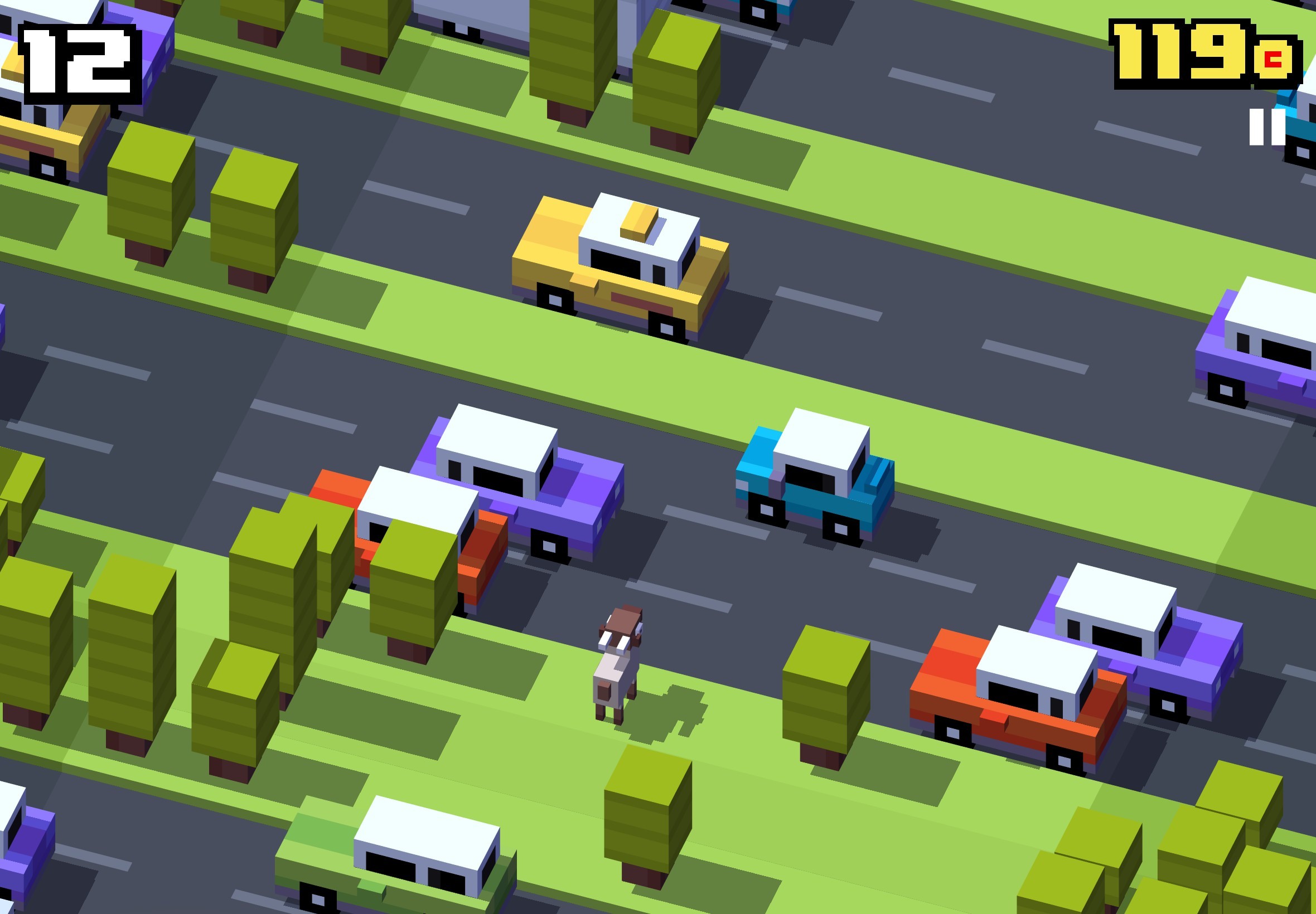 帶有普普街機風格的遊戲畫風,每種動物過馬路各自有不同逗趣姿態,也記得開啟遊戲音效,跟著動物們一起驚聲尖叫過馬路。