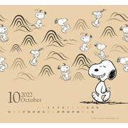 9、10 月份由元朝文人畫家黃公望所繪的「富春山居圖」,以秋日感濃厚的大地色調與高山聳立的線條設計為主。 SNOOPY 暢遊在峰峰相連的富春山景色之中,傳達出秋高氣爽郊遊的愉悅意境美。