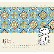 盛夏酷暑的 7、8 月份,故宮與 SNOOPY 桌曆以明朝的「掐絲琺瑯番蓮紋盒」為特色,擷取松石藍琺瑯色調、青金石掐絲的番蓮花紋,讓 SNOOPY 的剪影在飽和鮮明色調中有中西融合的獨特美感,加上走入番蓮花的萬花筒迷宮巧思構圖,整個就超有放暑假的童趣氛圍感。