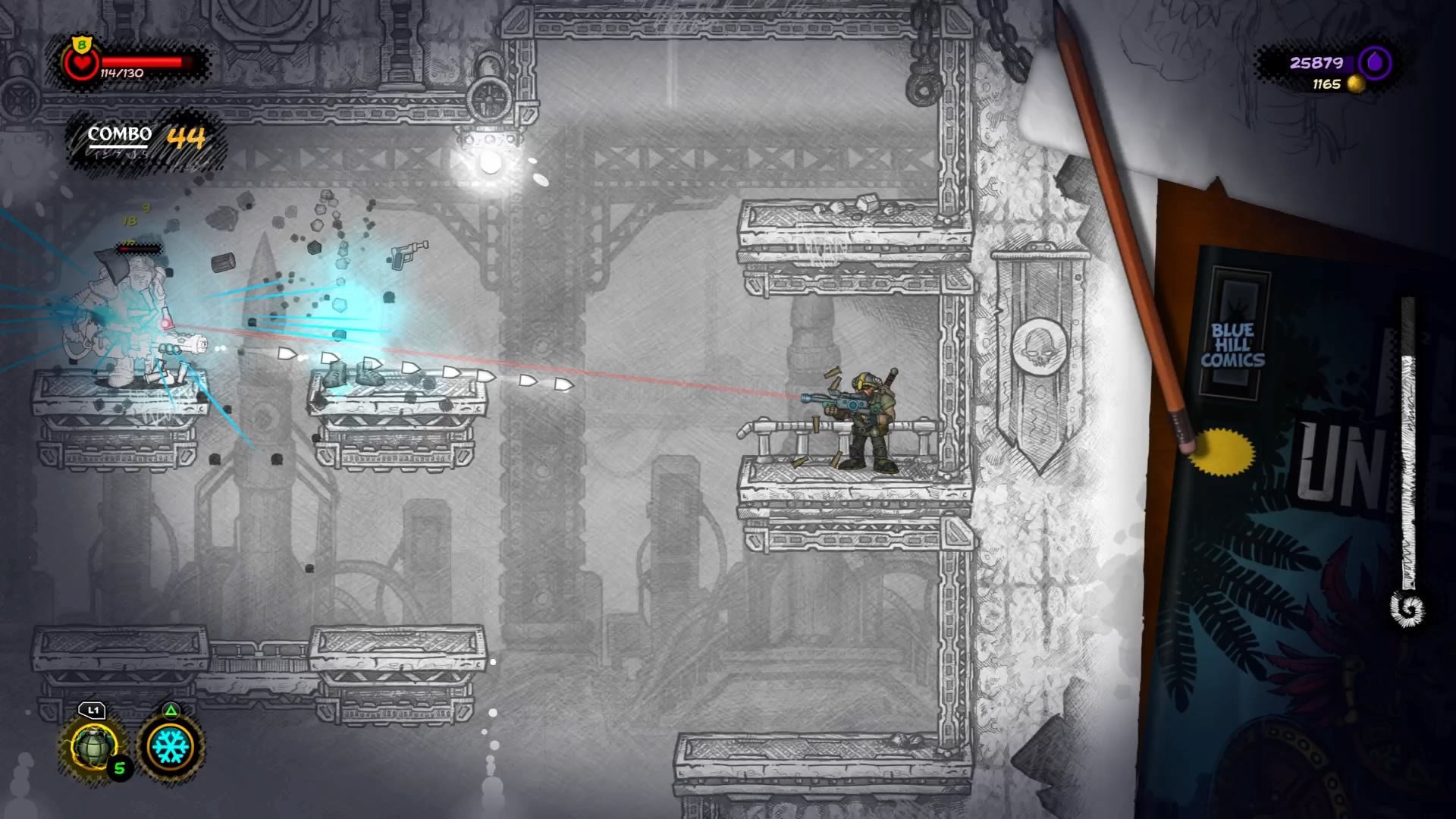 惡棍英雄》漫畫系列的書頁世界,進行狂熱的橫向動作槍戰。在作者 John Kowalsky 陷入創作瓶頸時,玩家將負責操控怒火,在活起來的漫畫頁間穿梭,於重重敵陣殺出血路,查明創作者陷入困境的原因。急馳、開火、消滅敵人,並躲避傷害來累積華麗且完美的連殺。不僅如此,在每一輪遊戲中,武器和裝備都會發生變化,為遊玩體驗帶來無盡的新鮮感。您能透過合作模式,線上或離線與夥伴一起勇闖戰場。