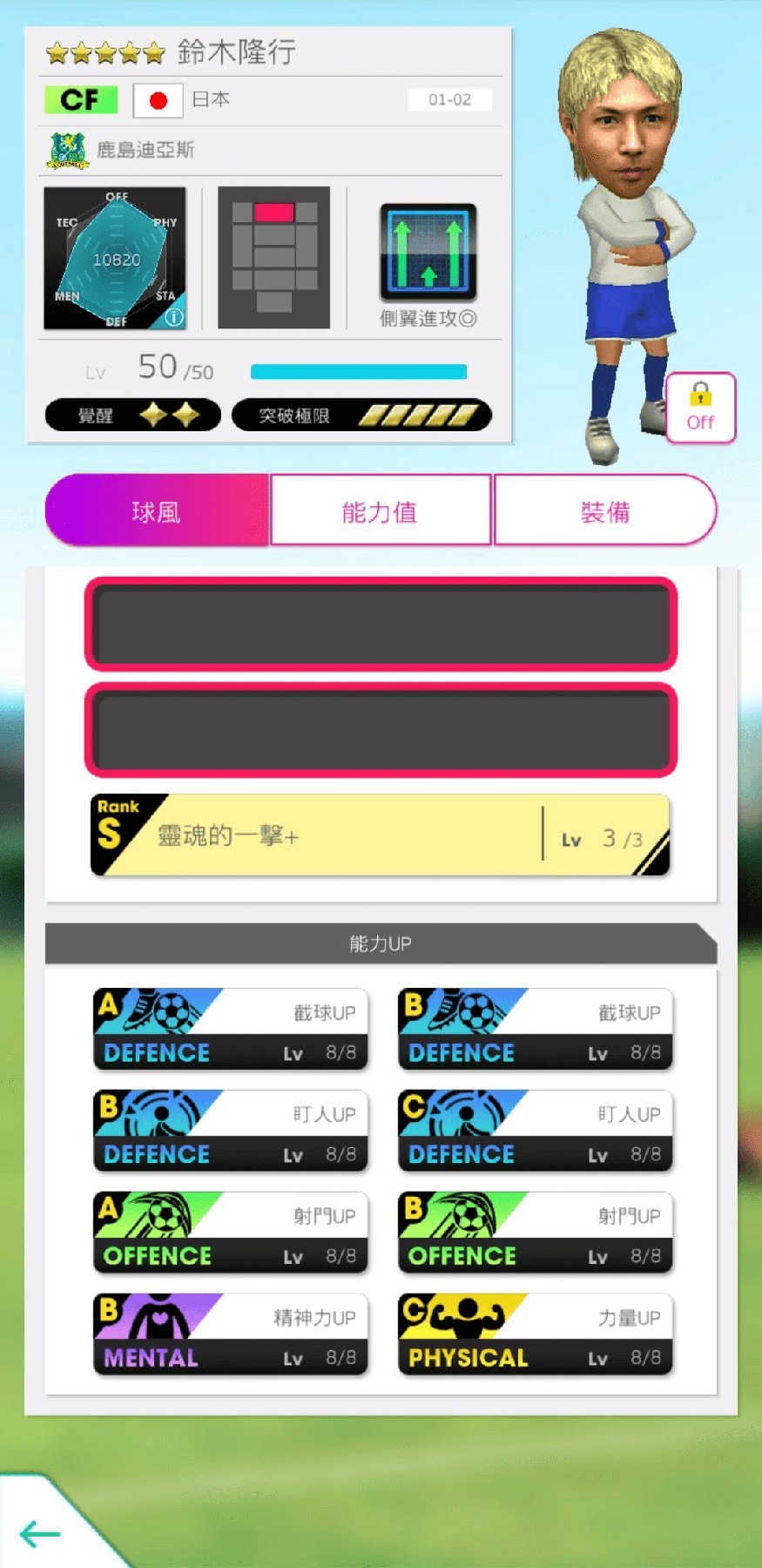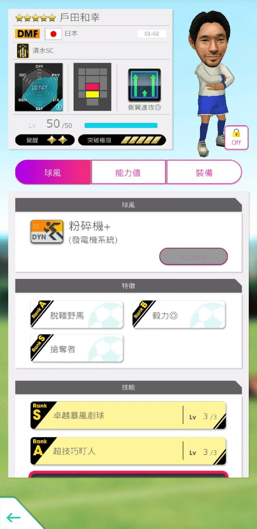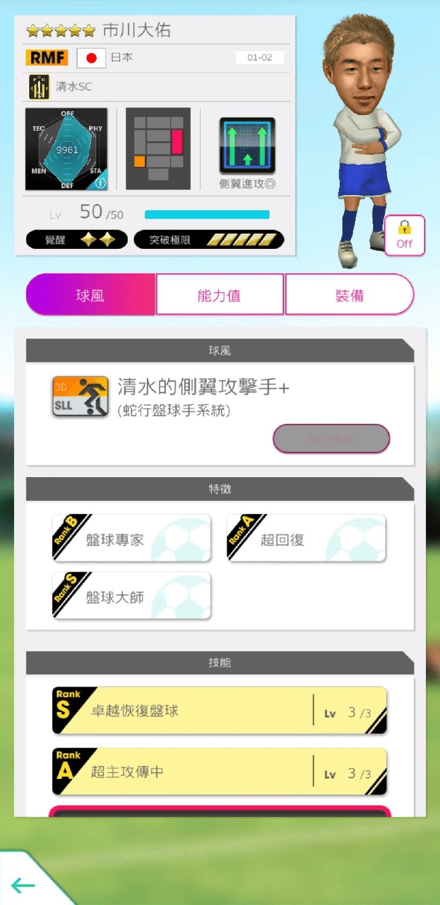 ★5 球員以「等級 MAX(Lv.50)/完成 2 階段覺醒/完成各技能各能力 UP Lv.2」之狀態登場。