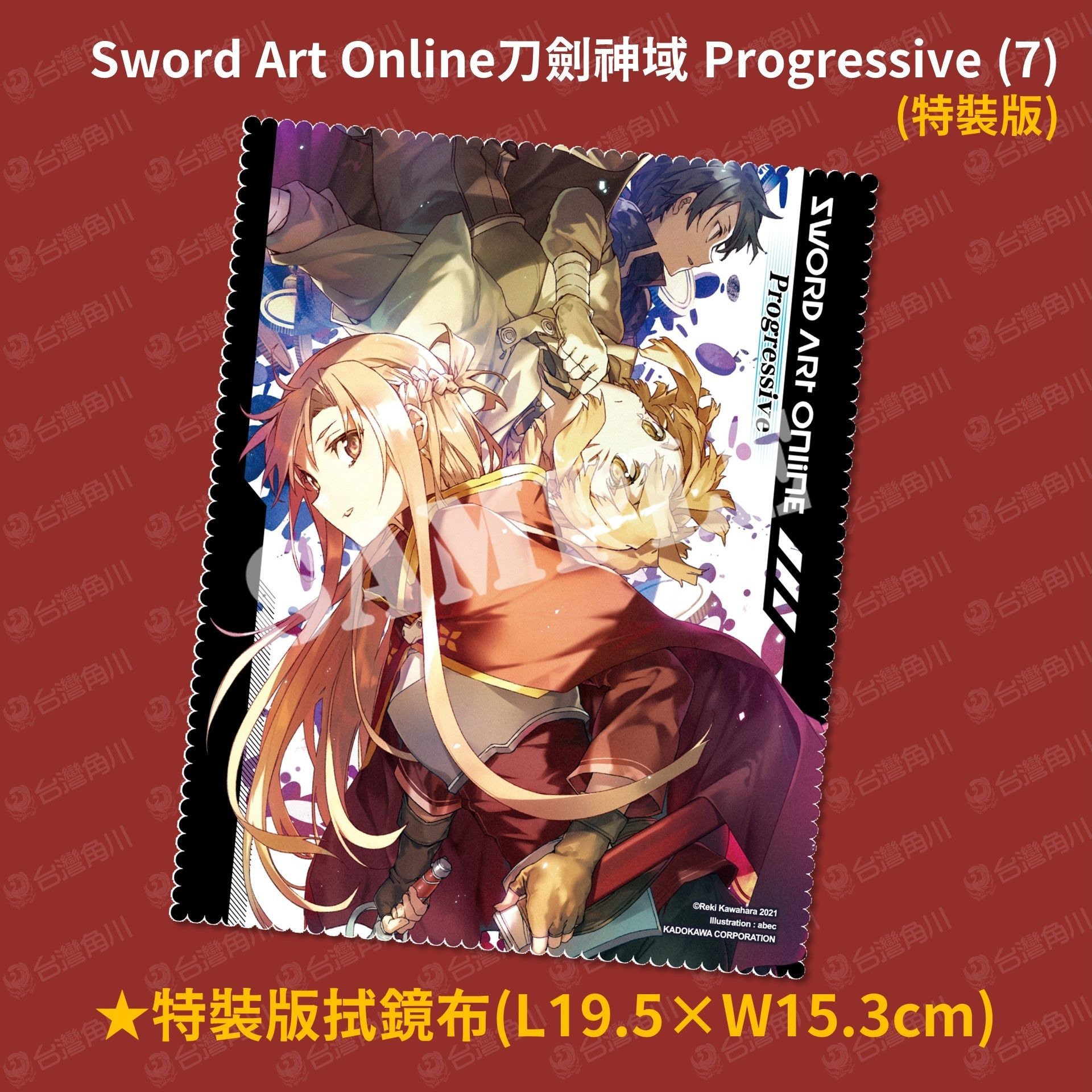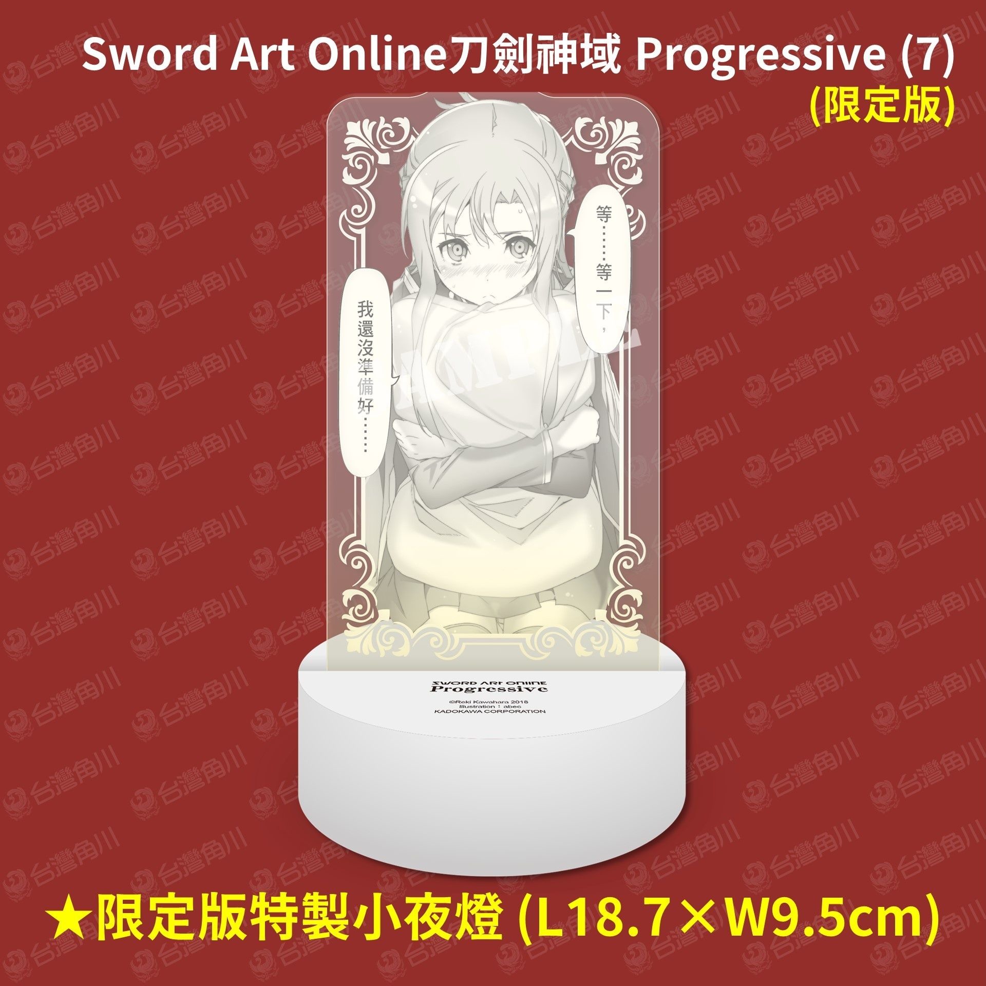 》第 7 集將於 2022 台北國際動漫節正式登場,本次將一口氣推出收錄特別樣式書衣小說與台灣限定特典的兩款特裝版本。(特裝版)特典為「布海報」與「拭鏡布」分別收錄亞絲娜與情報販子亞魯戈超可愛同框畫面,及主角三人全副武裝的帥氣英姿;(限定版)特典則是「特製小夜燈」亞絲娜害羞的緊抱枕頭說出「等……等一下,我還沒準備好……」女神暖心陪伴大家度過