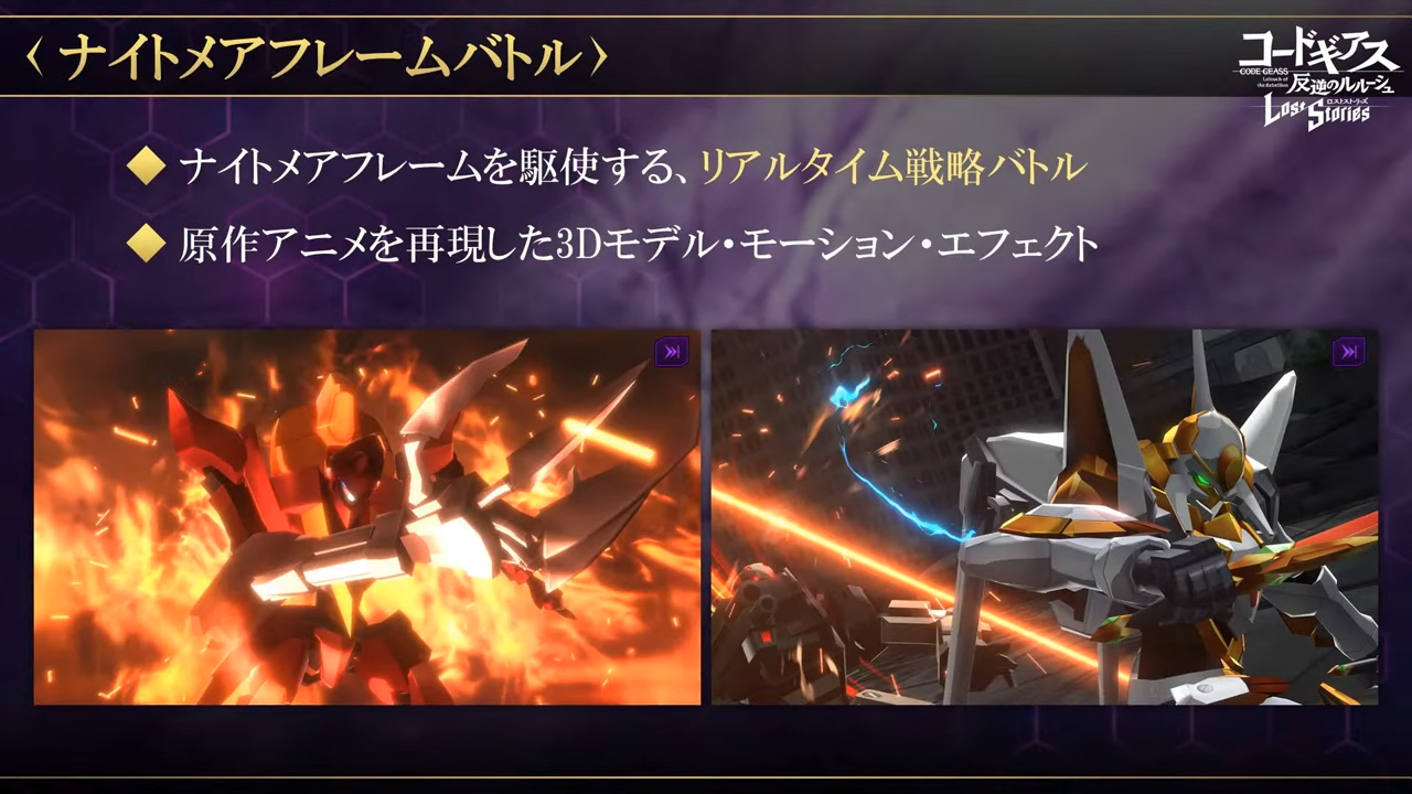 》的世界、時間軸發展出另一段與原作走向不同的故事。在戰鬥環節中,將操縱多架 Knightmare Frame 展開即時進行的戰略戰鬥,同時全 3D 的模型將讓玩家享受彷彿原作般的魄力及演出。