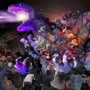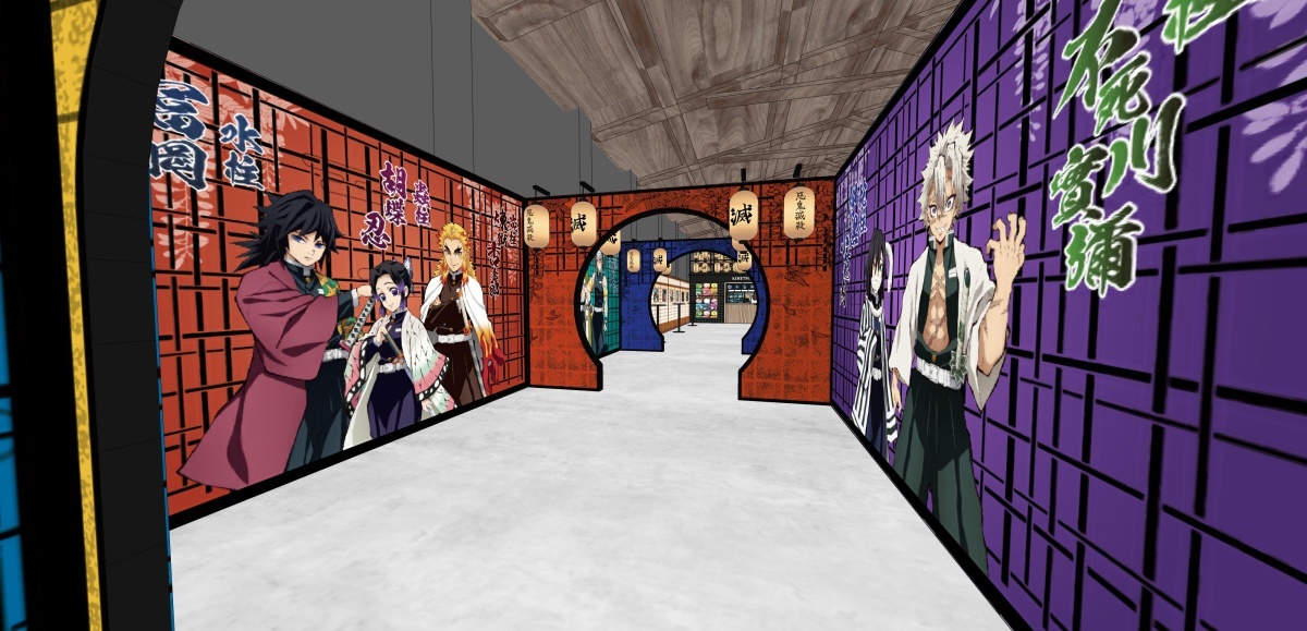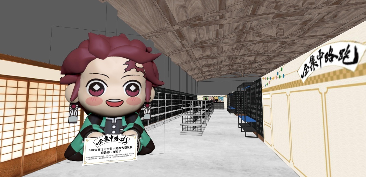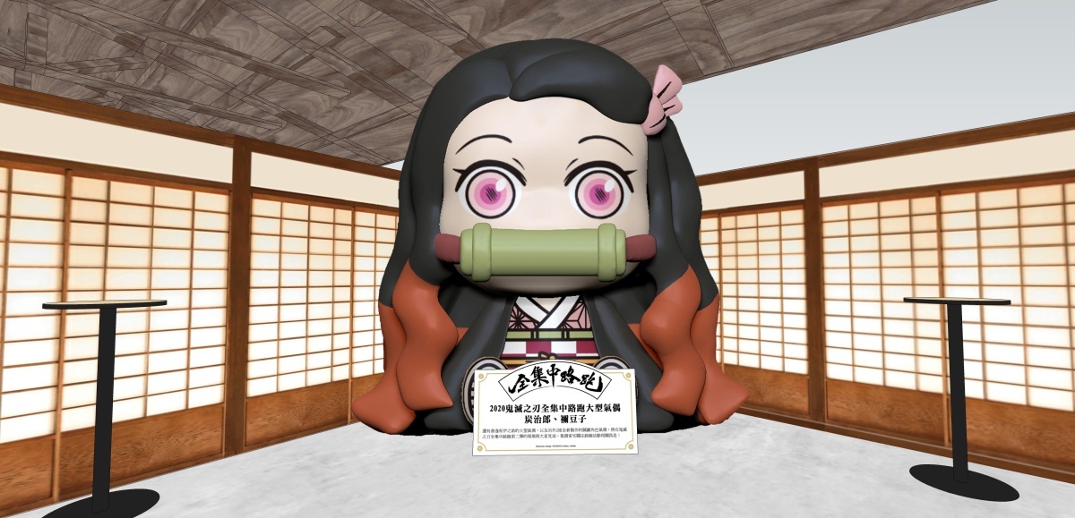「鬼滅之刃外帶 café 快閃店」台北場,有著全新造型巨型扭蛋機、角色隧道以及商品展售區。快閃店除了以日式屋台造型呈現外,活動現場還有著 Q 版禰豆子及炭治郎 3 米高氣偶等候粉絲拍照。