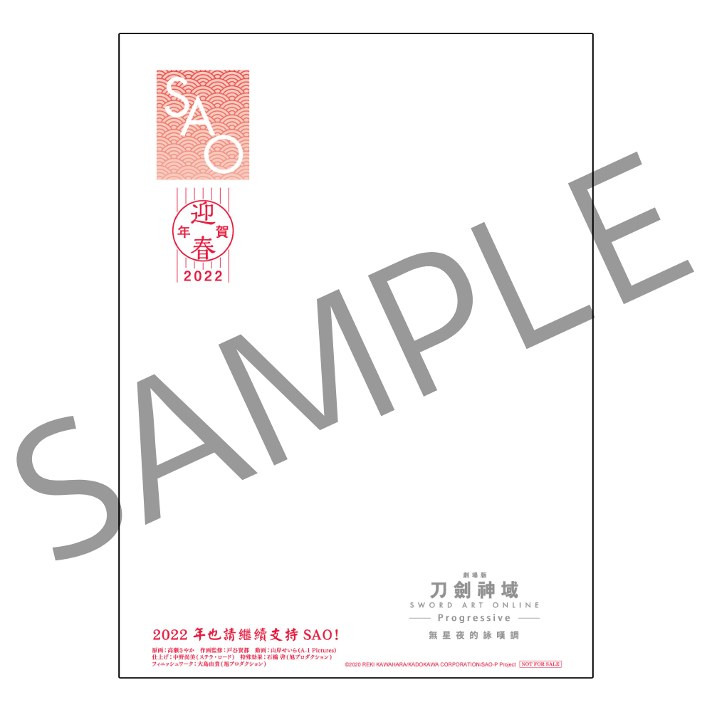 刀劍神域 Progressive 無星夜的詠嘆調》豪華新年特典場採預售票制,每張票都有「豪華新年特典禮包組」,每組內均含日本同款劇場版 ED 長形圖卡一組(每組二張)、劇場版複製原畫組一份(共計三款原畫,隨機贈送一款)、原作繪師 abec 描繪的「感謝支持」色紙風大圖卡一份、亞絲娜&米特 NEW YEAR 賀年卡,每組電影套票售價 600 元,除了能一次擁有精選特典之外,還有收納用的專屬珍藏信封;活動預售票將於 1 月 19 日中午 12 點,在威秀影城網站售票系統開賣。