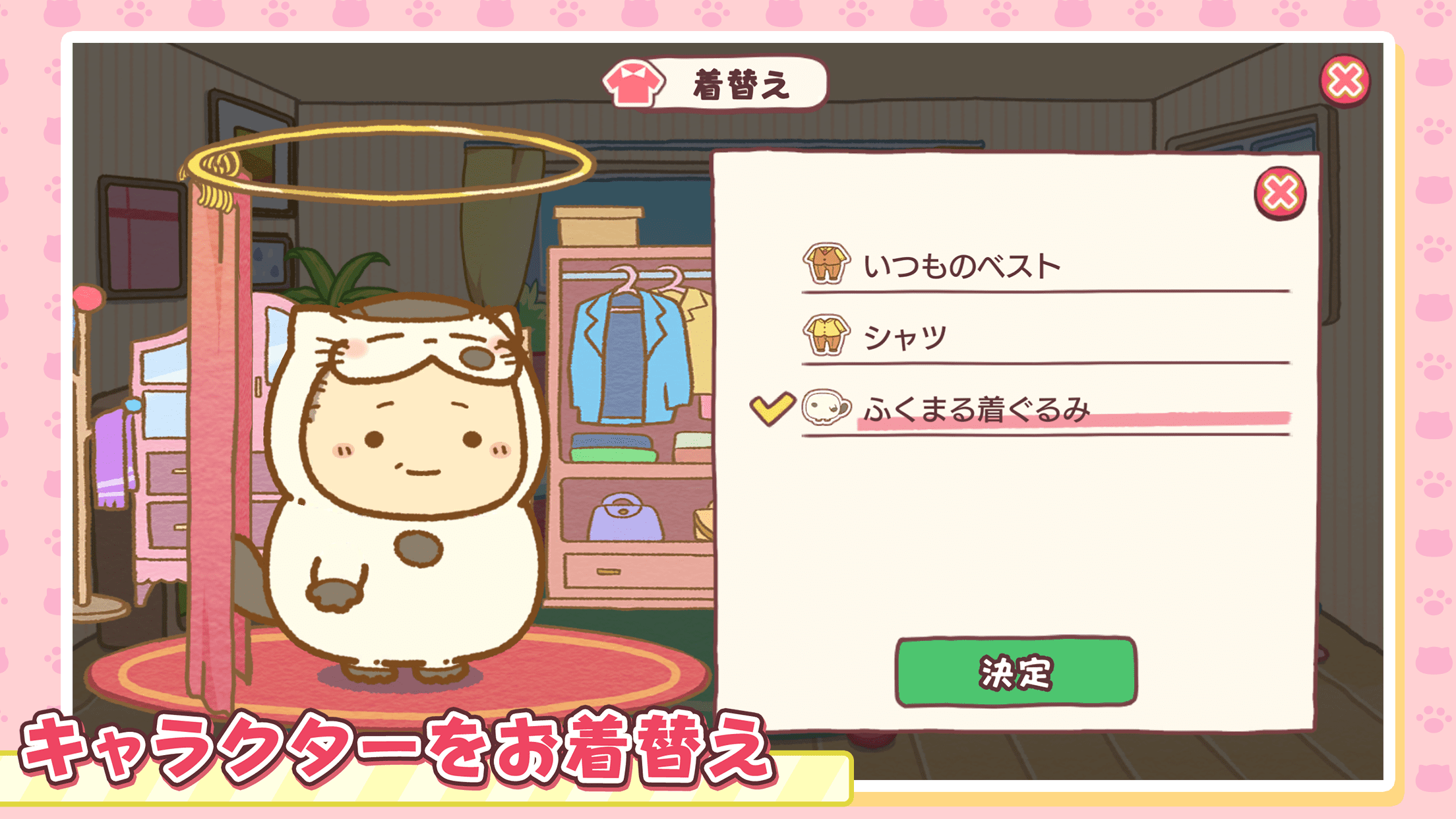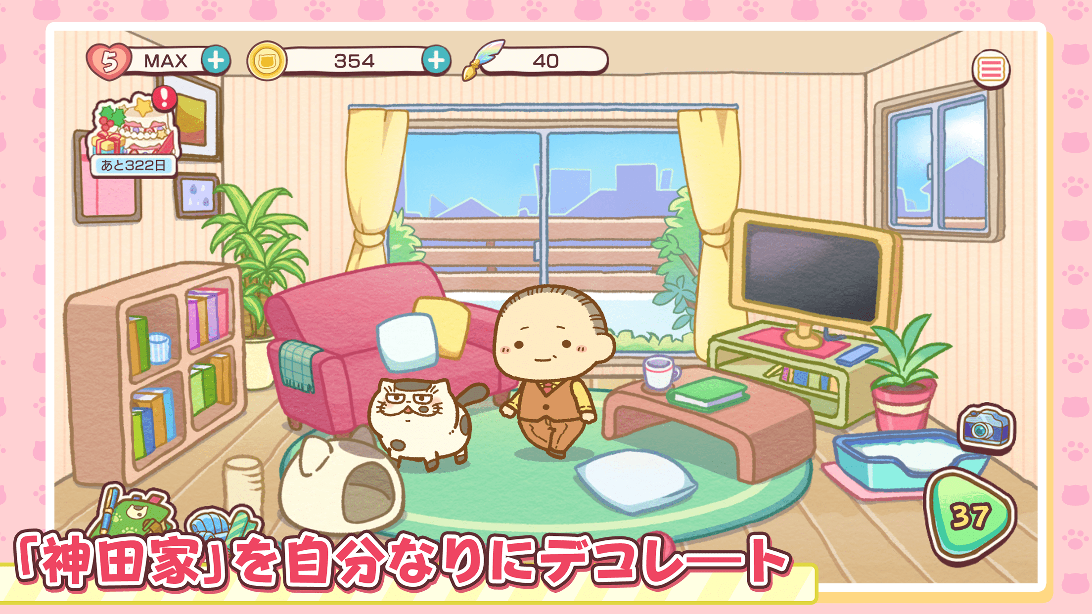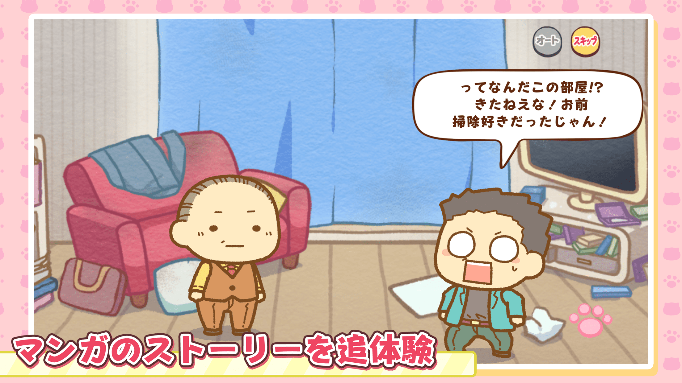 大叔與貓》改編的益智遊戲,採用湊齊 3 個相同種類碎片進行消除的玩法。原作中的人物將化身可愛的 Q 版角色登場,除忠實再現原作大叔與貓溫暖人心的日常生活外,也收錄許多遊戲限定的故事。此外,本作還推出了多種自定義要素,能自由布置房間或是為角色換裝,配合季節還將推出各種原創服裝。