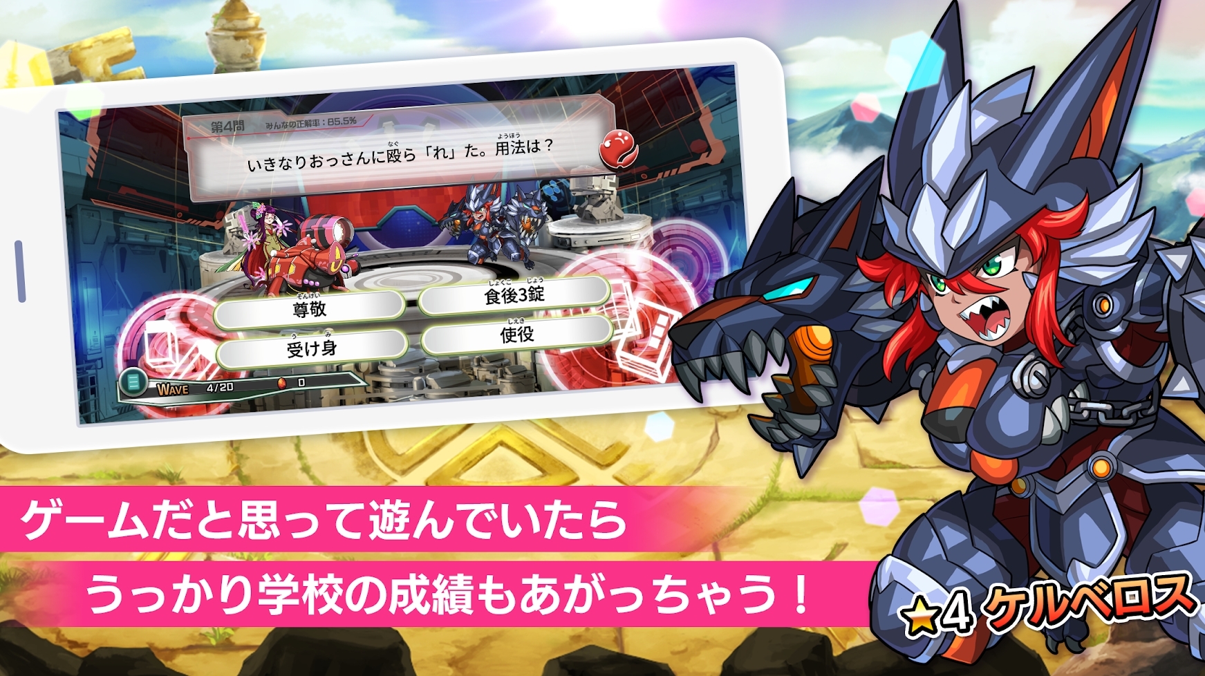怪物彈珠》開發的遊戲製作人「岡本吉起」所打造之中小學生向手機遊戲,期盼透過寓教於樂的方式,讓使用者能在投入遊戲的過程中自然地學到許多知識。玩家將可透過解題獲得寶石、收集各式各樣的角色,並在養成角色的同時享受戰鬥樂趣。