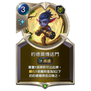 官方表示,艾娃的班德爾之森旅程多姿多彩,並終於圓滿落幕!在冒險的最後一段,遇上了各種不可思議的符文大地生物,其中包括一個被時間遺忘的原始約德爾人,還有一隻……魔法靈貓?班德爾森之外系列的最後一個擴充「奇妙旅程」新增 48 張卡牌,其中包含數名新英雄,以及 2 個新特性。