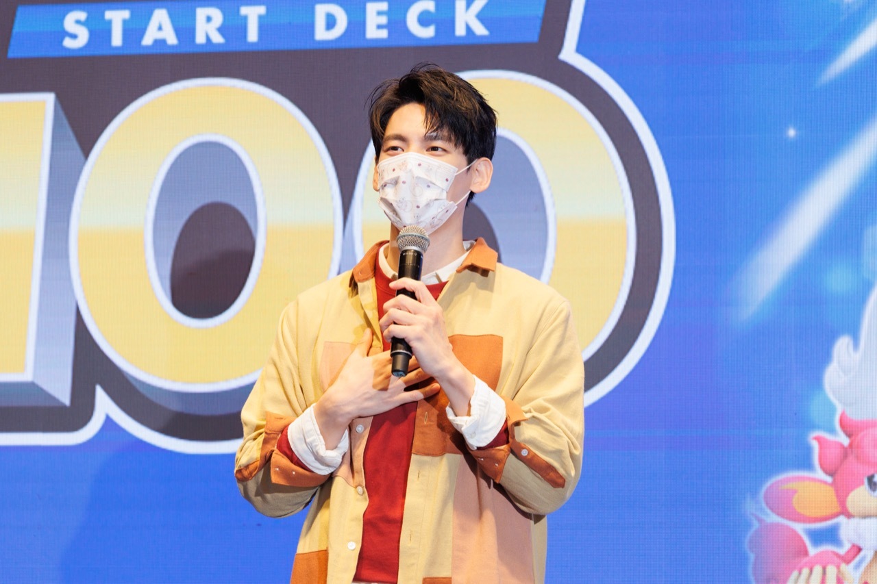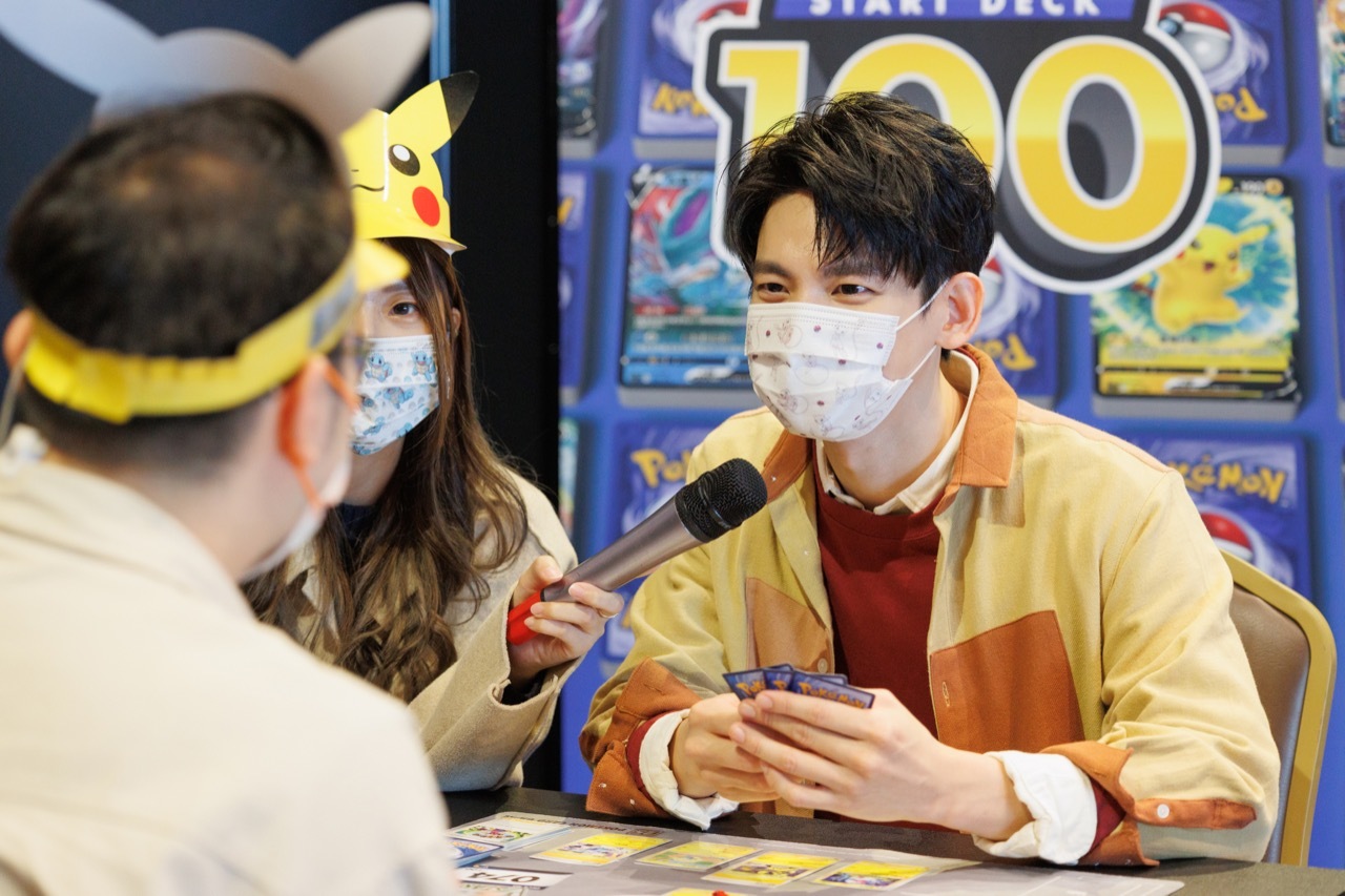 寶可夢集換式卡牌代言人林柏宏於記者會中暢談本次廣告拍攝的心得,談到自己是第一次接觸到大型的百人卡牌對戰感到非常興奮,透過卡牌對戰讓他不斷回想起以前自己喜歡的寶可夢,和認識到新的寶可夢,是相當棒的拍攝體驗。此外,林柏宏也透露自己最喜歡的寶可夢卡牌為「皮卡丘 V」,並在現場也進行了一場卡牌對戰。呼應本次「初階牌組 100」,株式會社寶可夢則特地準備了共 100 張的卡牌,作為驚喜贈送給林柏宏。