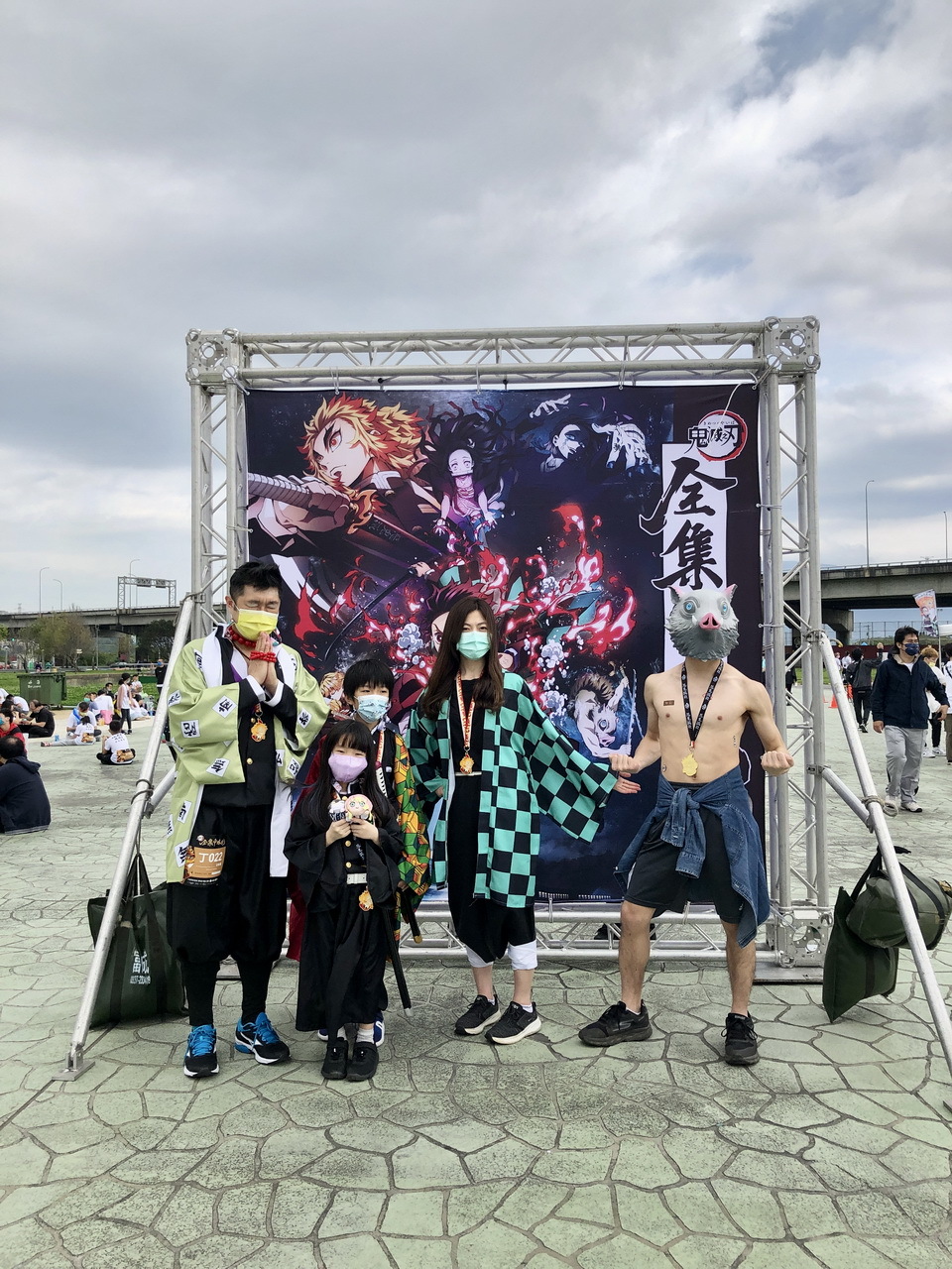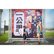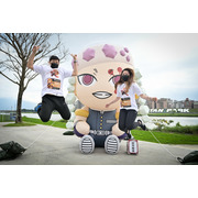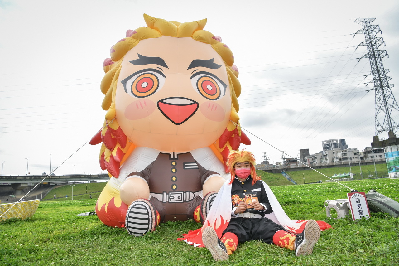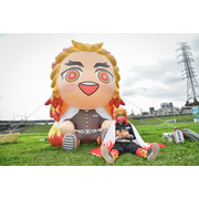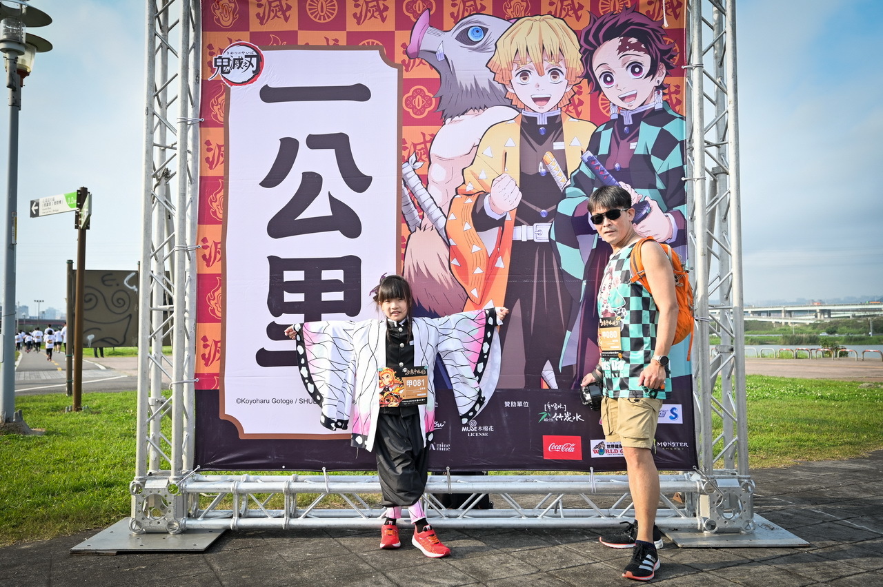 活動參與的跑者們,身著本次活動專屬、以炎柱煉獄杏壽郎為主角的全新設計路跑物資,賽道沿途設置了多座3公尺高的角色Q版氣偶,除了四位主角——炭治郎、禰豆子、善逸和伊之助,最大亮點即是全球首發、初次曝光的兩座人氣角色氣偶,「炎柱」煉獄杏壽郎和「音柱」宇髄天元,到場同歡的鬼滅粉絲們,都迫不及待地與六大角色氣偶合照,還有許多精彩動畫場面和角色圖素的拍照點裝置,主會場設有