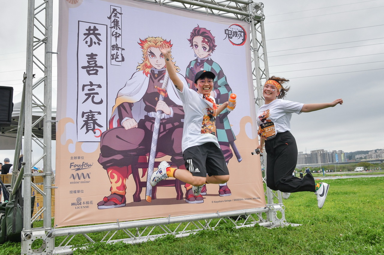 鬼滅之刃周邊商品販售區,以及各類吃喝玩樂攤位,3 公里的路跑里程,帶給粉絲們豐富的