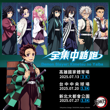 鬼滅之刃全集中路跑第二彈,也同步舉辦線上路跑場次,在3 月 5 日至 3 月 6 日週末兩天,只要使用指定紀錄路跑里程的 app,自行安排時間,完成 3 公里完賽門檻,截圖上傳至活動官網,經系統辨識成功,即可獲得與實體路跑同款的炎柱完賽獎牌、數位完賽證明,全台各地的鬼滅粉絲,都能參與路跑活動,完賽里程上傳期限至 3 月 13 日截止。