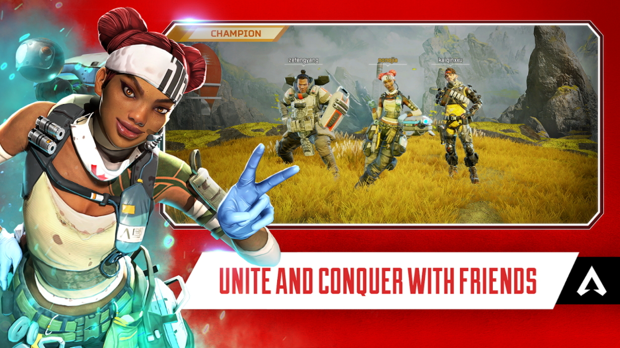 儘管完整版尚未發行,官方仍很興奮能讓玩家進入遊戲並遊玩正式發行時將推出的一些《Apex 英雄》手機版內容。在限區發行中,玩家將能夠在經典世界邊緣地圖上遊玩大逃殺。玩家也可以在刺激的新舊模式、團隊死鬥、迷你大逃殺、3 對 3 競技場中挑戰自我,並參與積分大逃殺比賽。想要和其他人一起遊玩嗎?玩家還能夠加入俱樂部並認識新朋友,所以趕快組隊並和朋友們一起遊玩以下英雄來獲得經驗值加成: