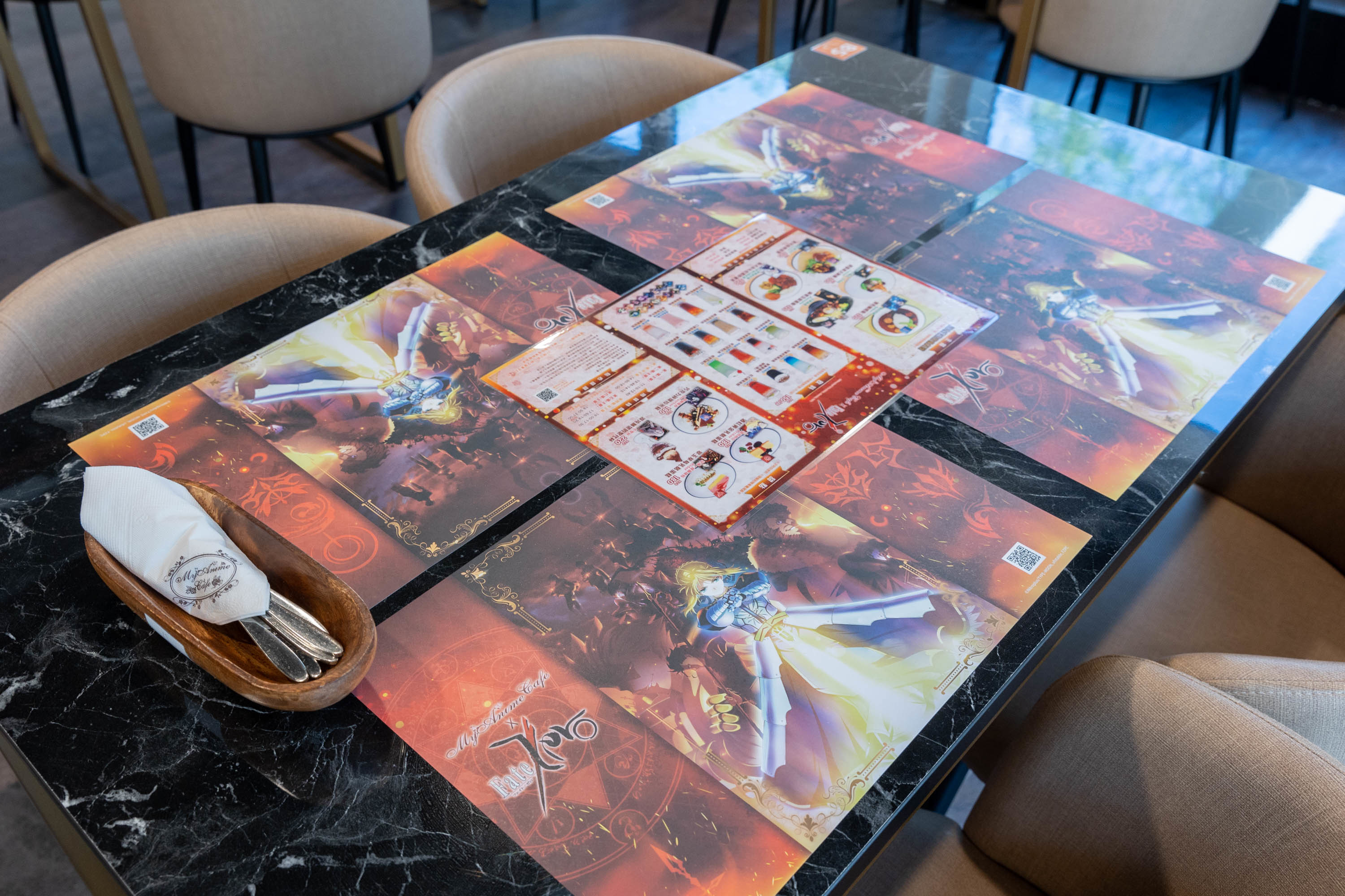 Fate/Zero》主題期間以作品的圖樣營造獨特的空間及氛圍,讓用餐者都能享受輕沉浸式用餐體驗。
