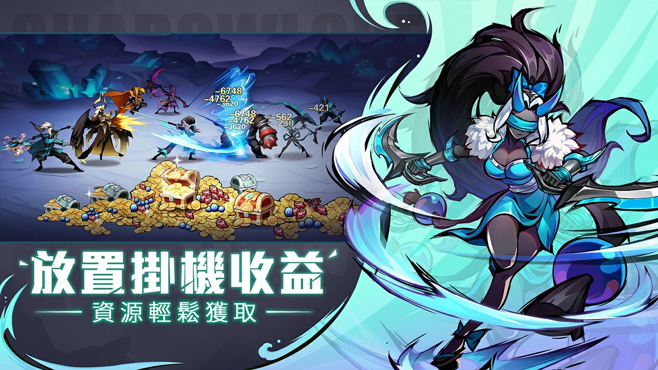 暗影傳說》是一款主打碳系風格的回合制放置掛機 RPG 手機遊戲,玩家將在一片名為艾爾蘭德的大陸上招募自己的小隊並展開冒險,面對守護森林的精靈、流焰之地的獸族、掌握著魔械科技的智慧人類…… 這些與上古時期便在這裡生長的混沌之靈,究竟是敵是友?