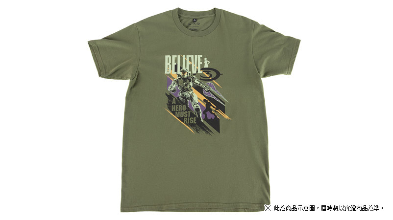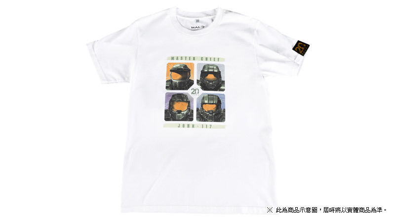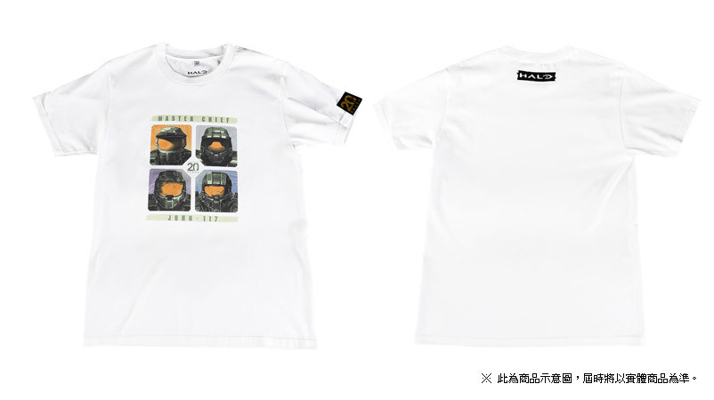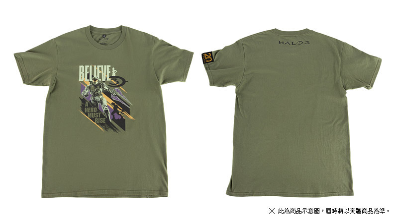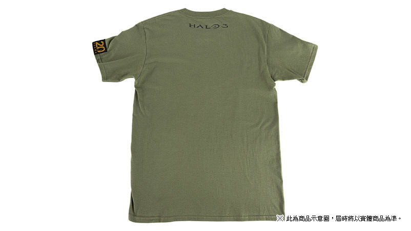 主題 T 恤共有三款,分別為黑色的「HALO REACH」主題 T 恤,白色的「20 週年」主題 T 恤以及軍綠色的「HALO 3」主題 T 恤。
