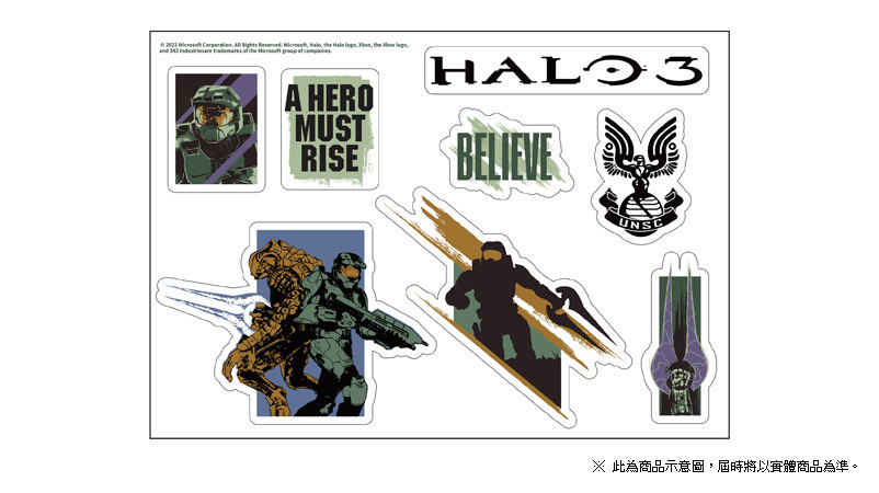 最後一戰 3》為主題,手執能量光劍的士官長蓄勢待發之姿,“BELIEVE” 與 “A HERO MUST RISE” 的字樣一明一暗,在軍綠的底色上十分搭調。