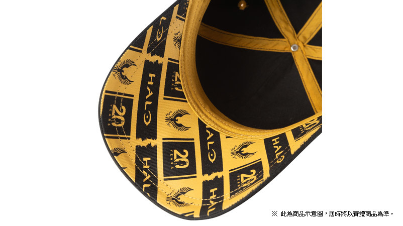 正面圖案是「UNSC」圖示,立體刺繡工藝讓圖案更加躍然於帽上,動感十足。側面加入了最後一戰 20 週年的 Logo 元素,帽檐下方也是藏有平鋪的花紋,調整帽圍的帶子則印上「MASTER CHIEF」。黑色與黃色的搭配,也讓整體非常突出。
