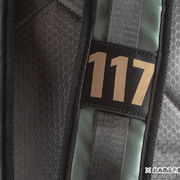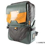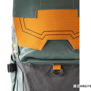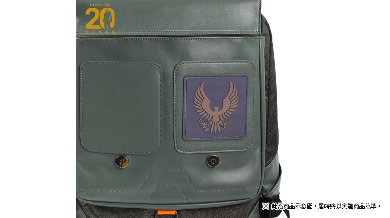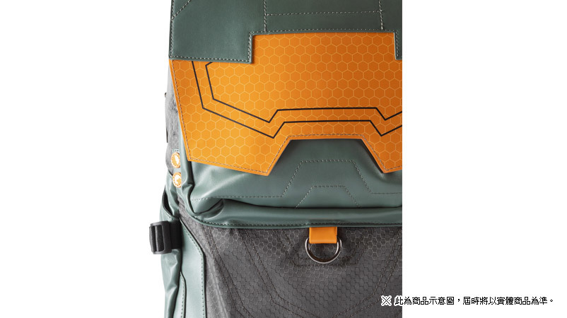 以遊戲中士官長為設計主題,靈感取材於士官長的裝甲,沿用了同樣的色系,PU 材質的護目鏡與獨特的走線,形神俱佳。六邊形的圖案包裹於整個背包,模擬出護甲充盈的感覺。當然也不乏許多小裝飾,包括「HALO」側標、117 的標誌、20 週年紀念的 logo 以及「HALO」 logo 的拉鍊墜。翻開外背包面也會發現「UNSC」的標誌,內襯也鋪墊了諸多元素,整個背包充滿了設計細節!