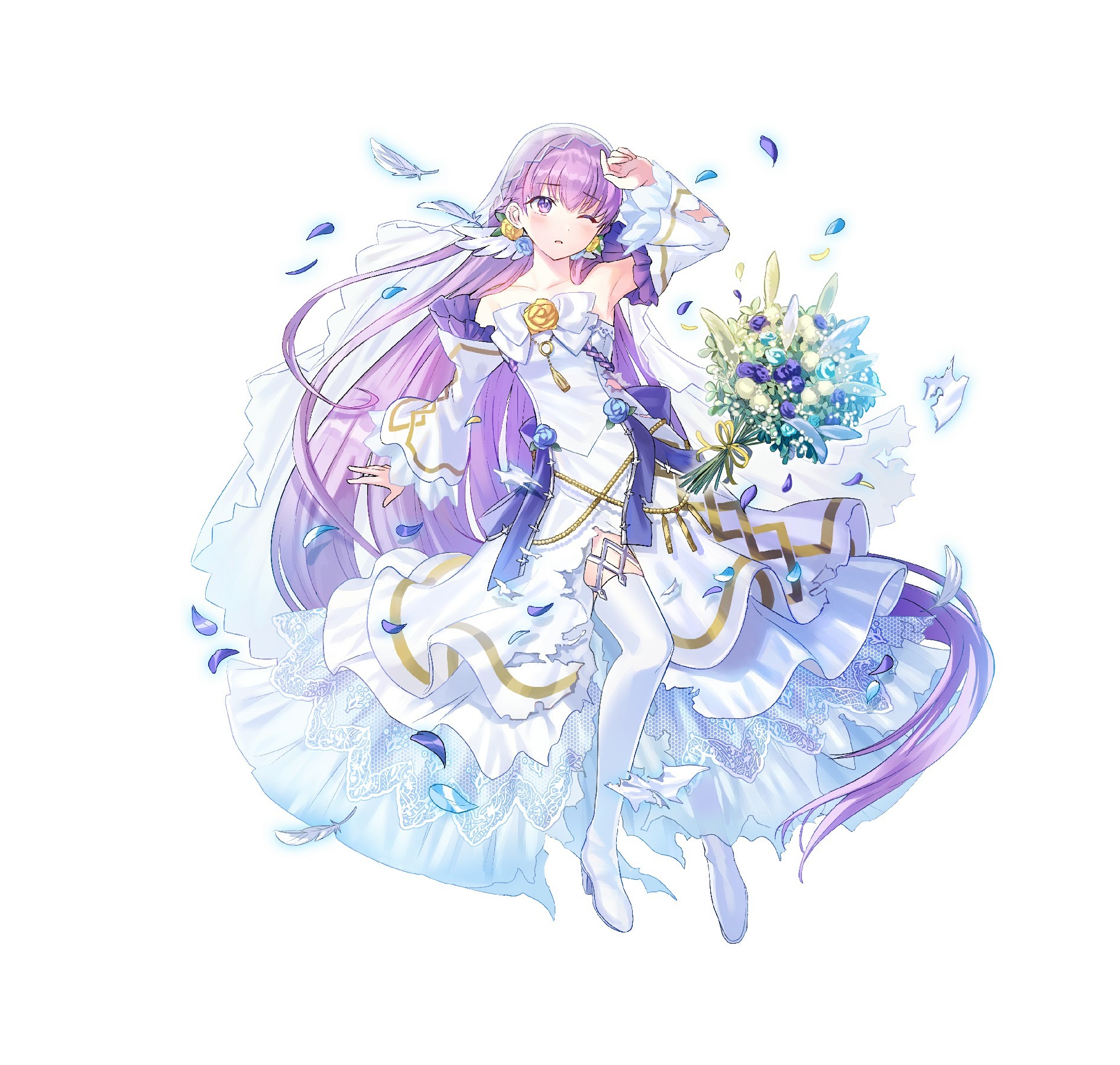 換上婚禮風格服裝的超英雄齊聚一堂,於本召喚活動舉辦期間,超英雄們將以★5 精選登場。此外,有超英雄們登場的外傳地圖「百花繚亂的新娘」和期間限定任務也同時發布。