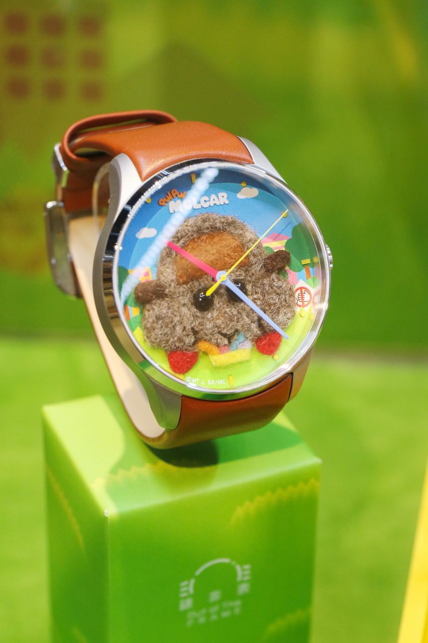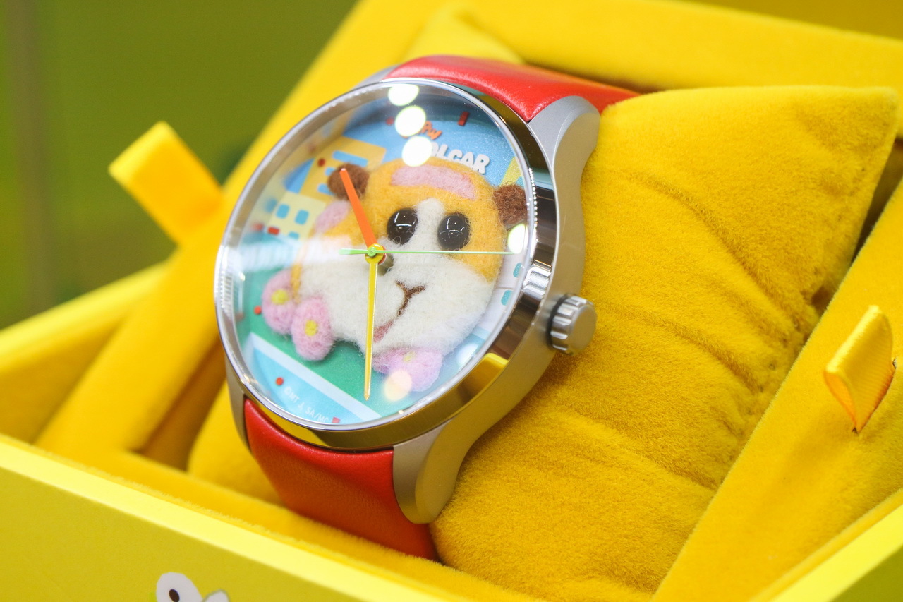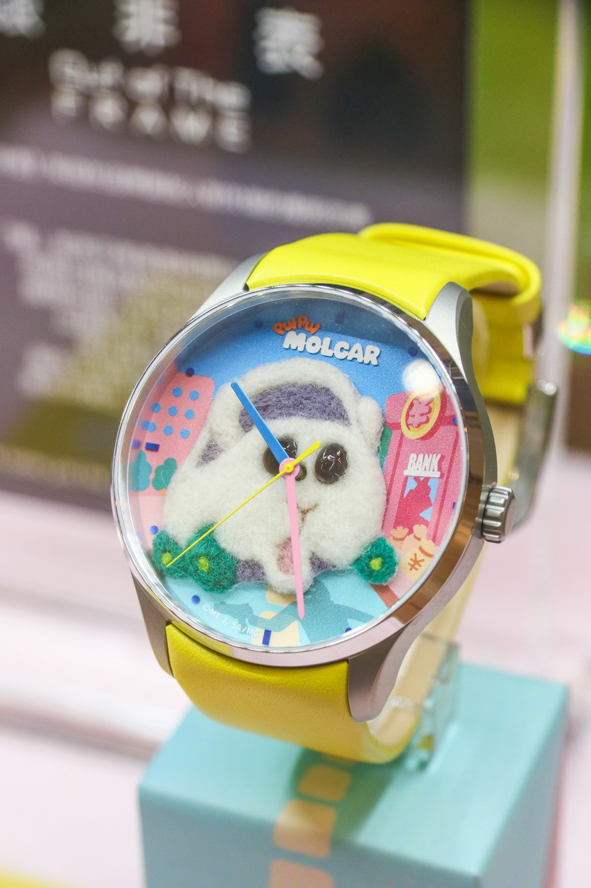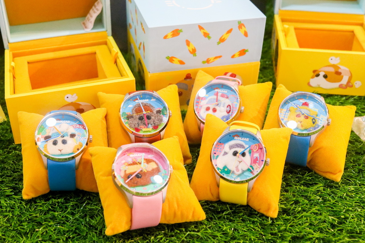 天竺鼠車車與台灣創新腕錶品牌「錶非表」首次聯名,於《天竺鼠車車》期間限定快閃店獨家首賣,每一支都是職人手工羊毛氈製作,一針針勾勒出天竺鼠車車的軟萌神情,獨家立體療癒羊毛氈版手錶。除了有在路上奔馳勇敢的馬鈴薯、意外被搶匪劫車的膽小西羅摩,與不挑食的活潑泰迪 3 款絨毛款式外,更有珍藏組 7 款。