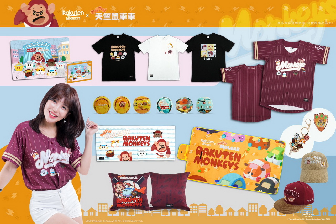 」首次跨界聯名,不僅有經典條紋紀念球衣還有 3 款短 T,大人小孩尺寸通通都有;另外還有 QQ 毛材質聯名老帽及異材質拼接的帥氣棒球帽、野餐墊、紀念球、應援巾、鑰匙圈、徽章、抱枕、拼圖等周邊。