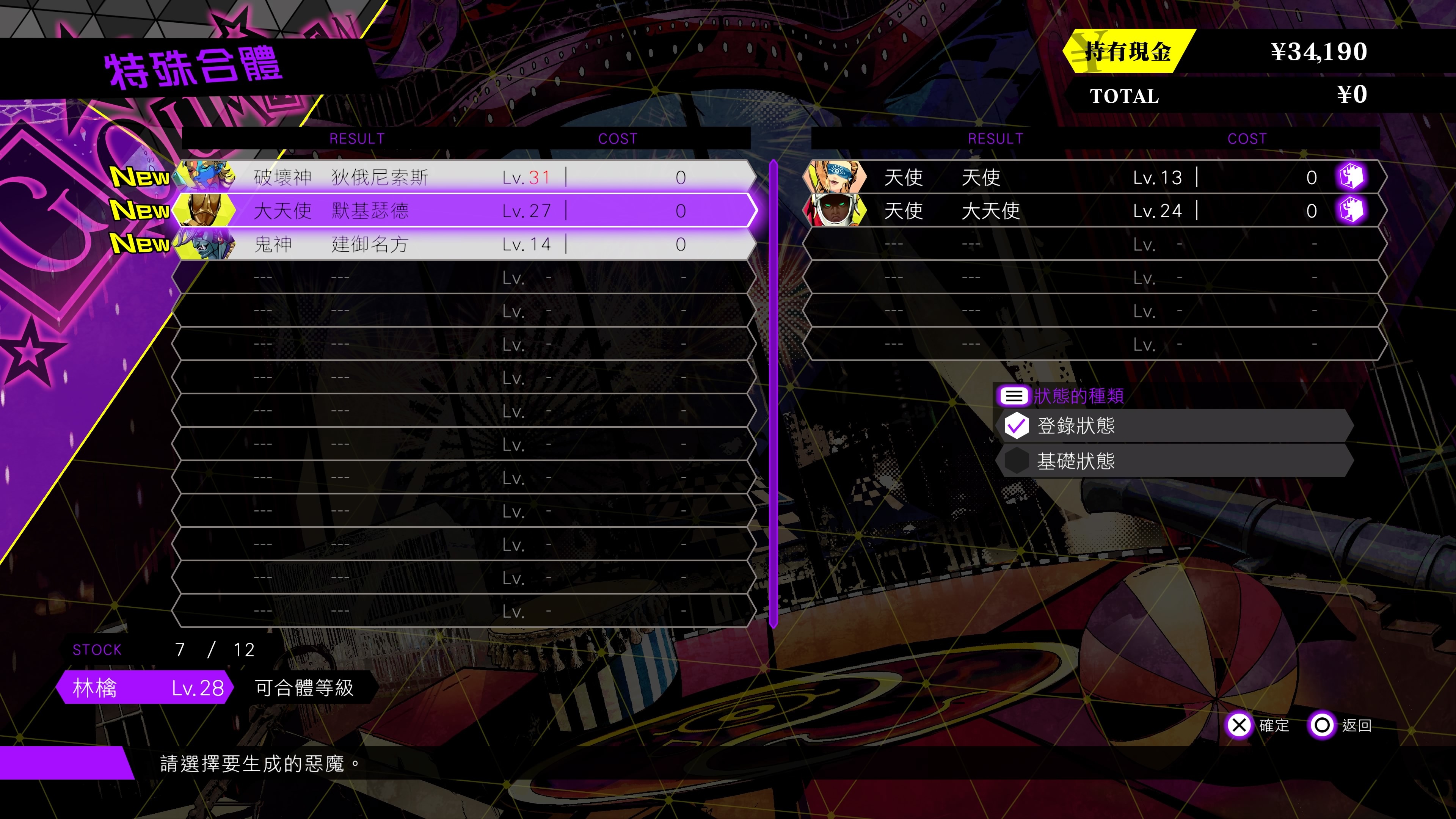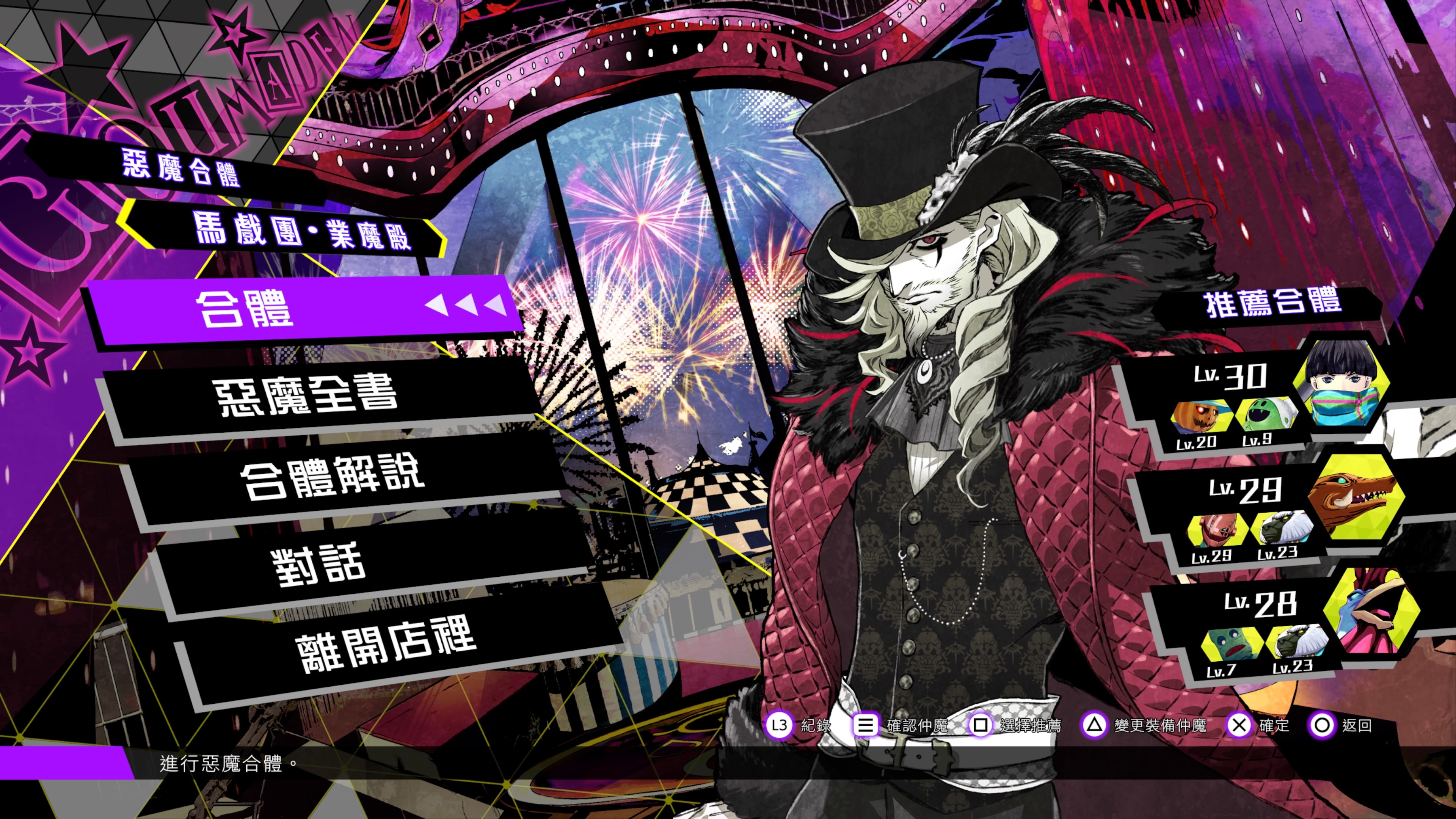 在六寶界的馬戲團・業魔殿可以進行惡魔合體,藉由惡魔合體能創造出全新的惡魔。可使用 2 隻惡魔進行 2 身合體,另有以特定惡魔為材料才能進行的特殊合體。也能以合體結果來設定多種條件篩選條件後再執行合體,當然也有能從可進行的搜尋合體或是目前持有的惡魔組合中,依據推薦的合體結果給予選擇提示的推薦合體。不論是想要仔細地進行合體或是想要快速地完成合體,都可以找到最適合自己創造仲魔的方法。