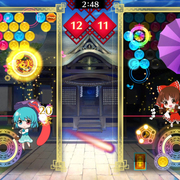 東方咒術泡泡》的「線上對戰」功能已透過免費的大型更新增加,可以與其他玩家一起在網路環境中進行排名配對和個人配對兩種新對戰模式。與此同時,還增加了可以確認排名賽戰績等的「排名配對實績」和可以設定外號的「稱號」以及挑戰關卡的計分排名功能,可以與其他玩家較勁自己的實力。