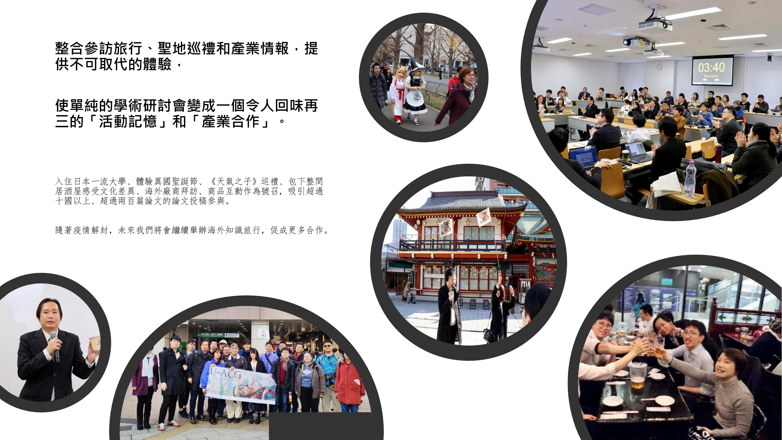 另外,隨著產業型態、內容產業、文化風格和科技應用之典範轉移需求日增,主辦單位於近年研討會後增聘研究人力,看好未來數年仍有此一需求,今年預定從中增聘研究人力,歡迎有興趣從事廣義 ACG 文化和產業的朋友加入!