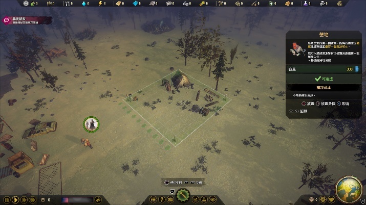 決定徽章旗幟與殖民地名後,玩家就要成為拓荒者開始建立全新的殖民地!首先必須建設殖民地的第一個建築物,也就是營地。
