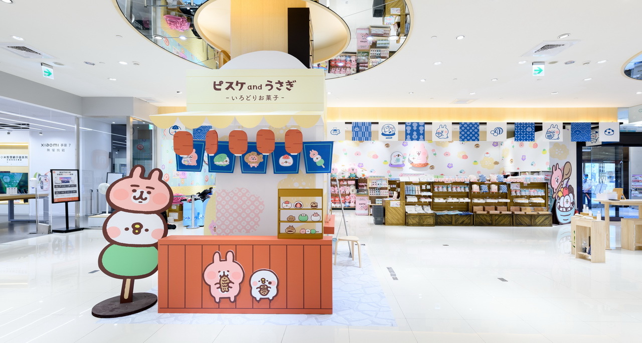 「卡娜赫拉的小動物甜甜和菓屋」期間限定店已於 6/3 起正式統一時代百貨高雄店 1F 期間限定登場,現場可以看到超大粉紅兔兔,還有許多可愛的布置與擺設。