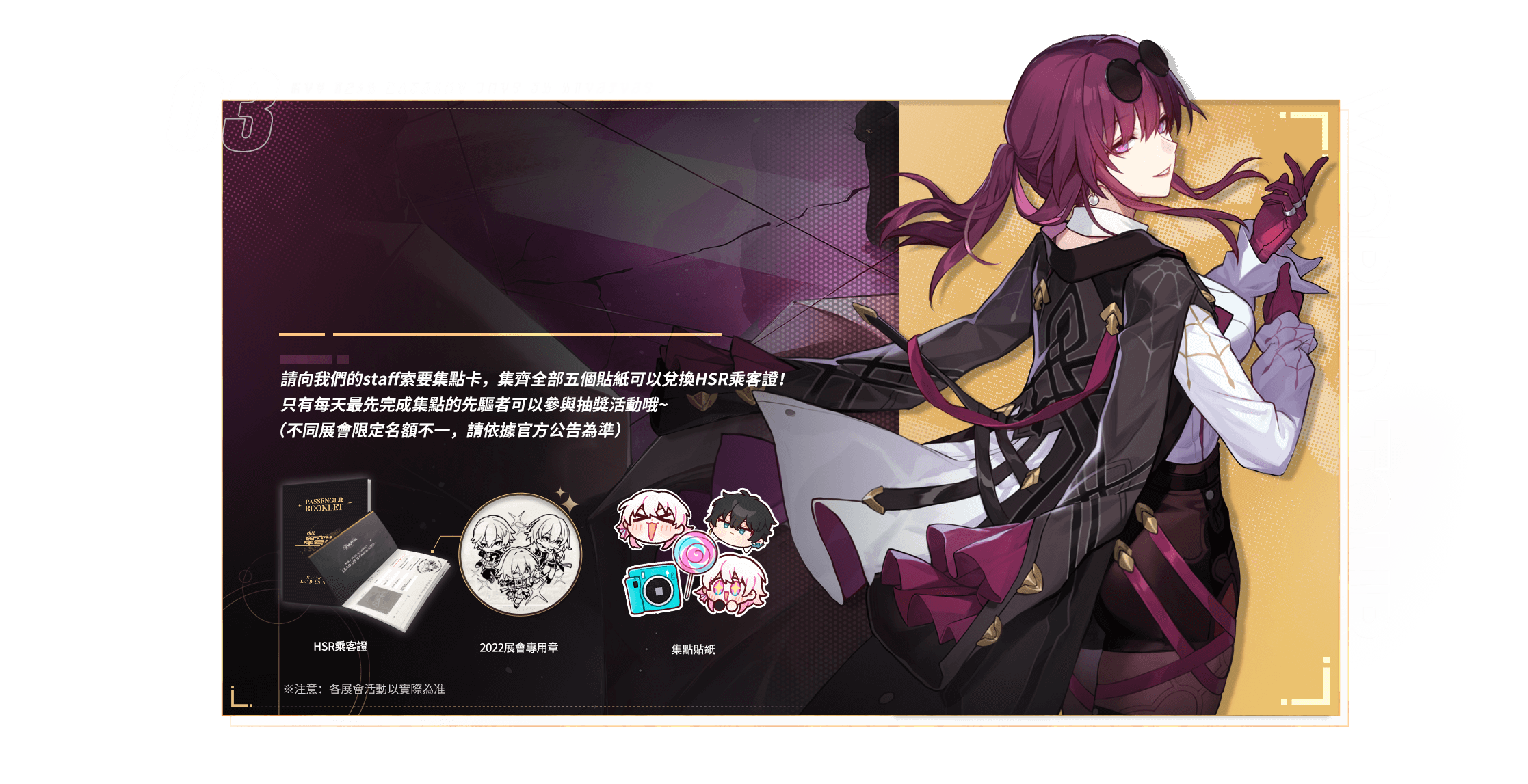 崩壞:星穹鐵道》(iOS / Android / PC)近日宣布,星穹列車即將在未來幾個月展開一場名為「SR World Tour 2022」的全球展會之旅,駛向包括 Anime Expo(洛杉磯)、Japan Expo(巴黎)、Gamers Con(臺北)、CGHK(香港)等展會,和各個地方的開拓者見面。
