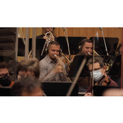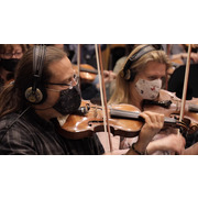 A: 處於開發期的時候,新冠疫情正在歐洲蔓延,所以只能透過視訊跨海錄音。視訊中也很難得一見的看到專業演奏者戴著口罩進行演出。即使戴著口罩可能影響到呼吸,但他們依然保有專業的堅持,整個錄製過程非常順利。有趣的是他們提供額外的付費側拍錄影服務,相信很多業者跟他們合作都會想要把這個過程拍起來,因為 70 人的陣仗跟演奏起來的氣勢真是帥透了。當然,我們也購買了這項服務(笑)。